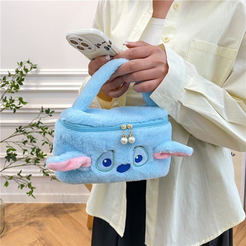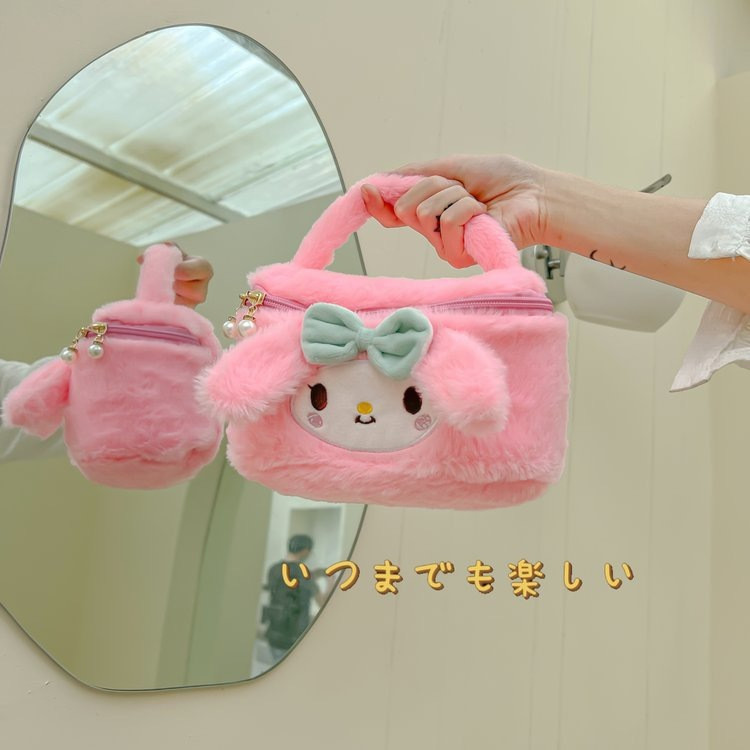 (พร้อมส่ง)J10152กระเป๋าใส่เครื่องสำอาง ขนนุ่มนิ่ม สีพาสเทล มี8ลาย มีซิป พกพาสะดวก