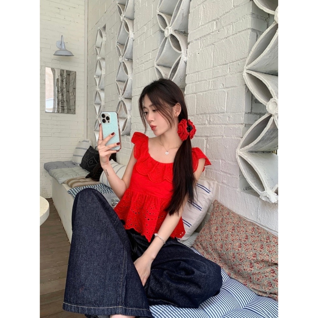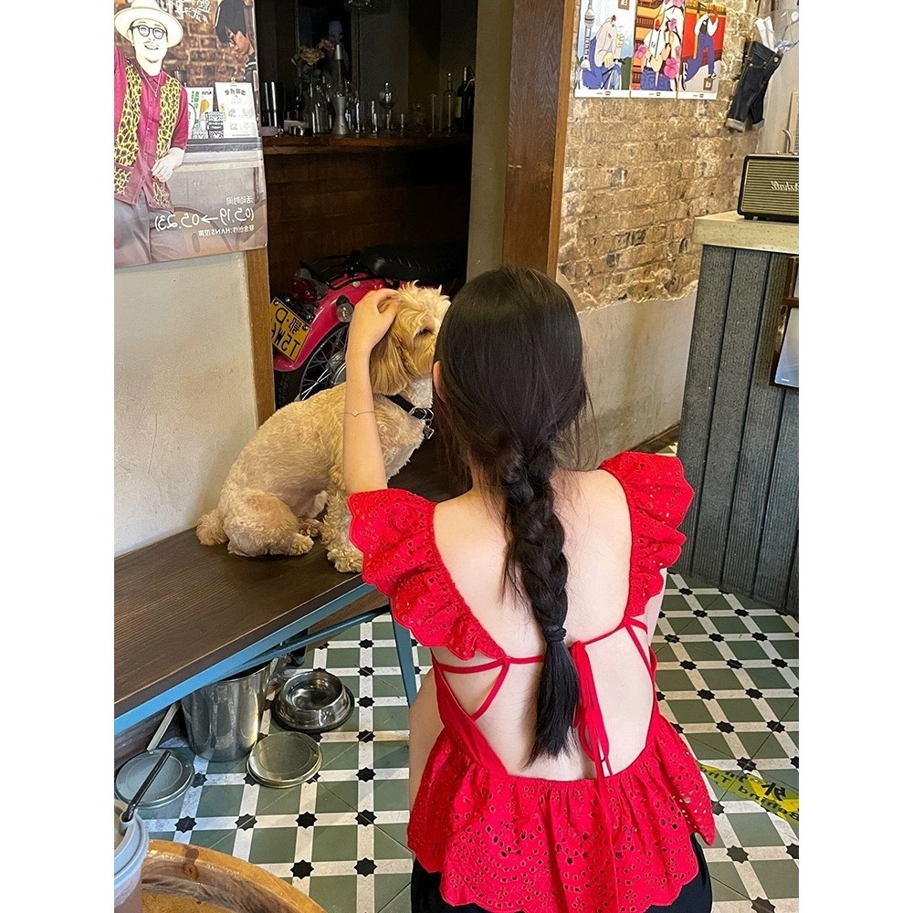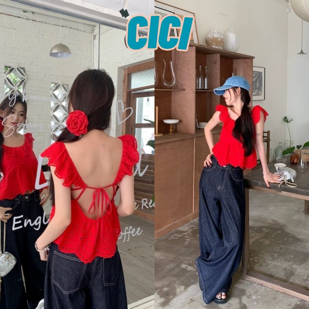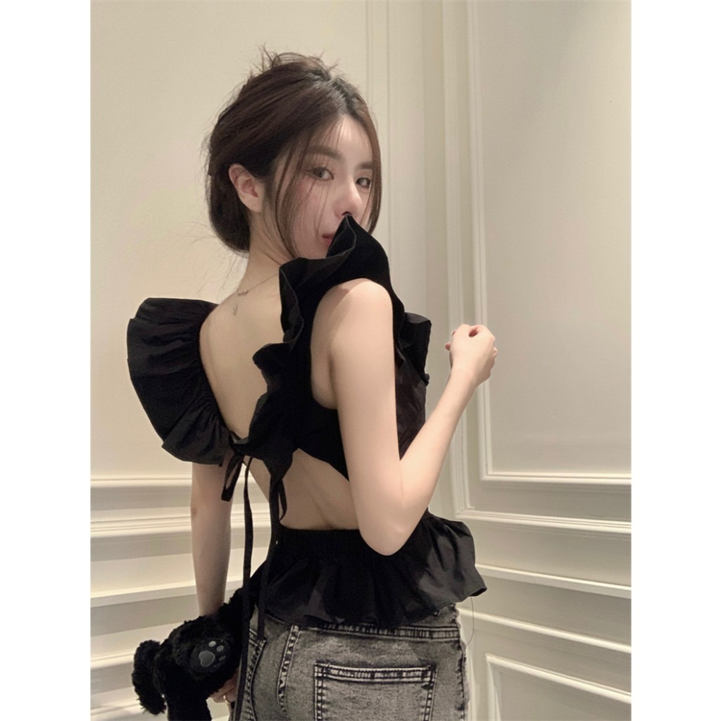Cici(AR1058)เสื้อแขนกุด แต่งระบาย ด้านหลังเว้าพร้อมเชือกผูก สไตล์เกาหลี