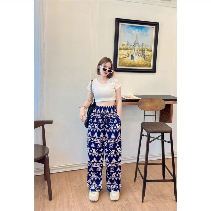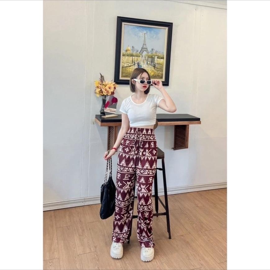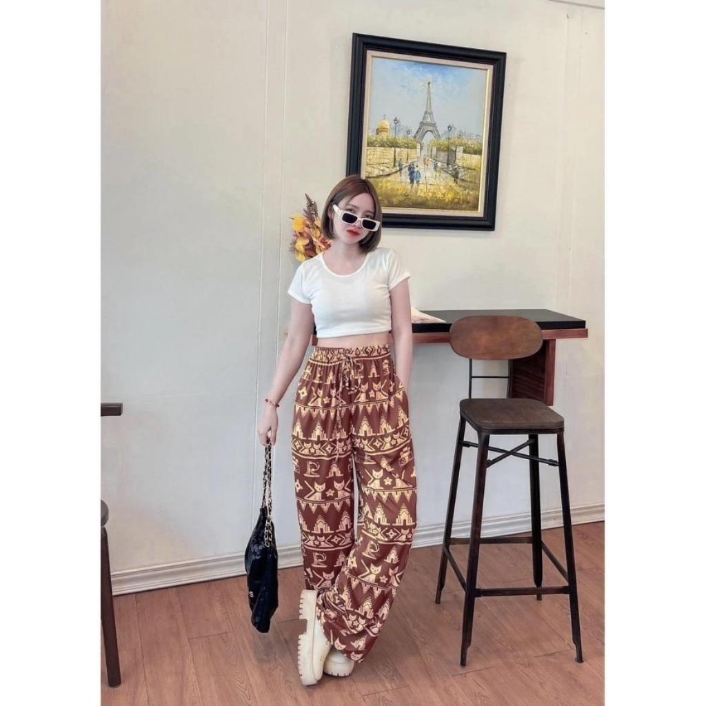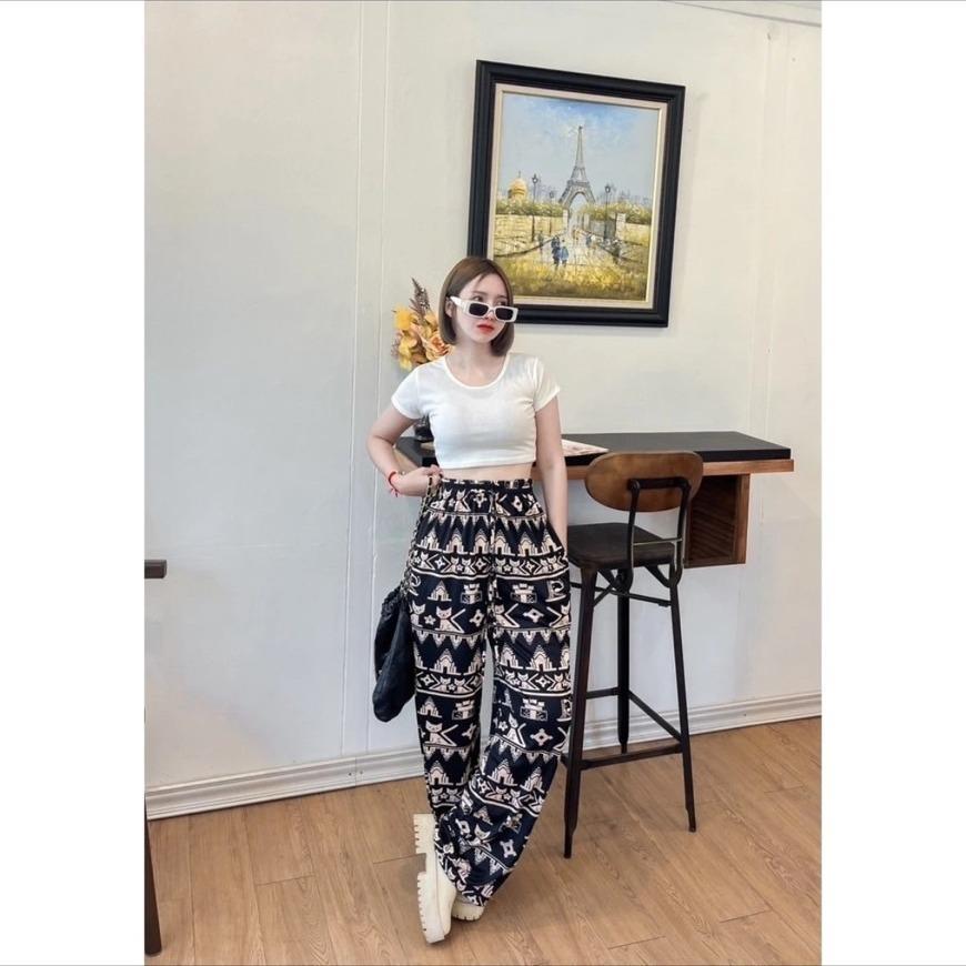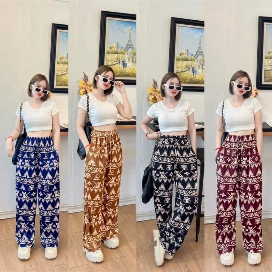 กางเกงพิมพ์ลายแมว เนื้อผ้าใส่สบาย E02 กางเกงขายาว เสื้อผ้า ผู้หญิง ***ไม่มีกระเป๋าข้าง***
