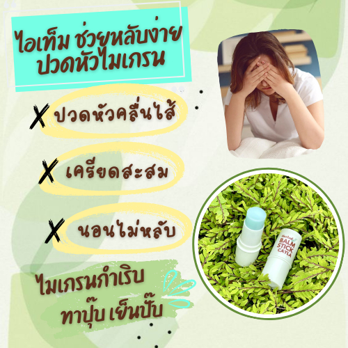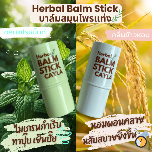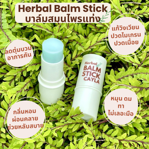 บาล์มบรรเทาไมเกรน วิงเวียน ลดคัน สูตรเย็นสดชื่น บาล์มสมุนไพร 100% Herbal Balm Stick Cayla เนื้อซึมง่าย