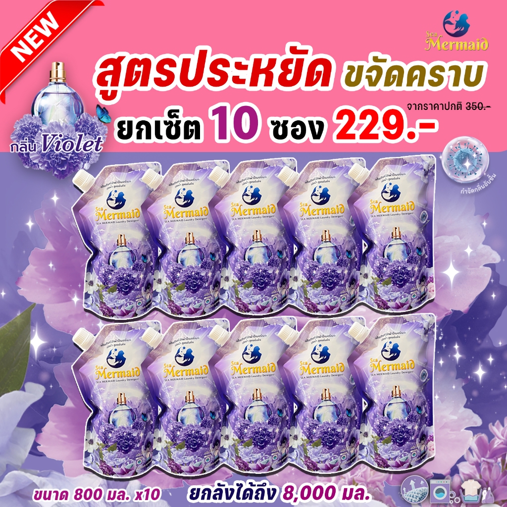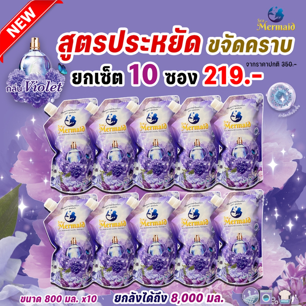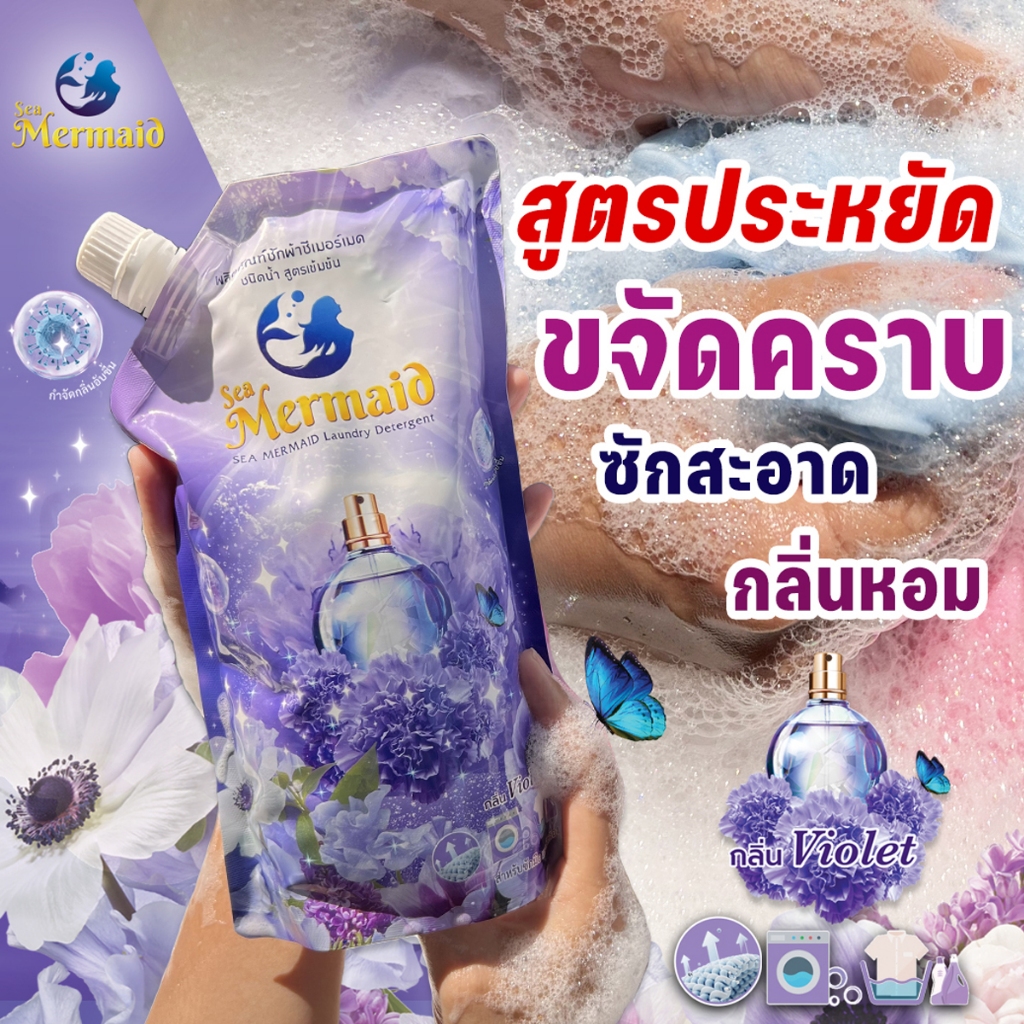 ใหม่! Sea Mermaid น้ำยาซักผ้าซีเมอร์เมด 8000 มล.(800มล.x10ซอง) กลิ่น Violet