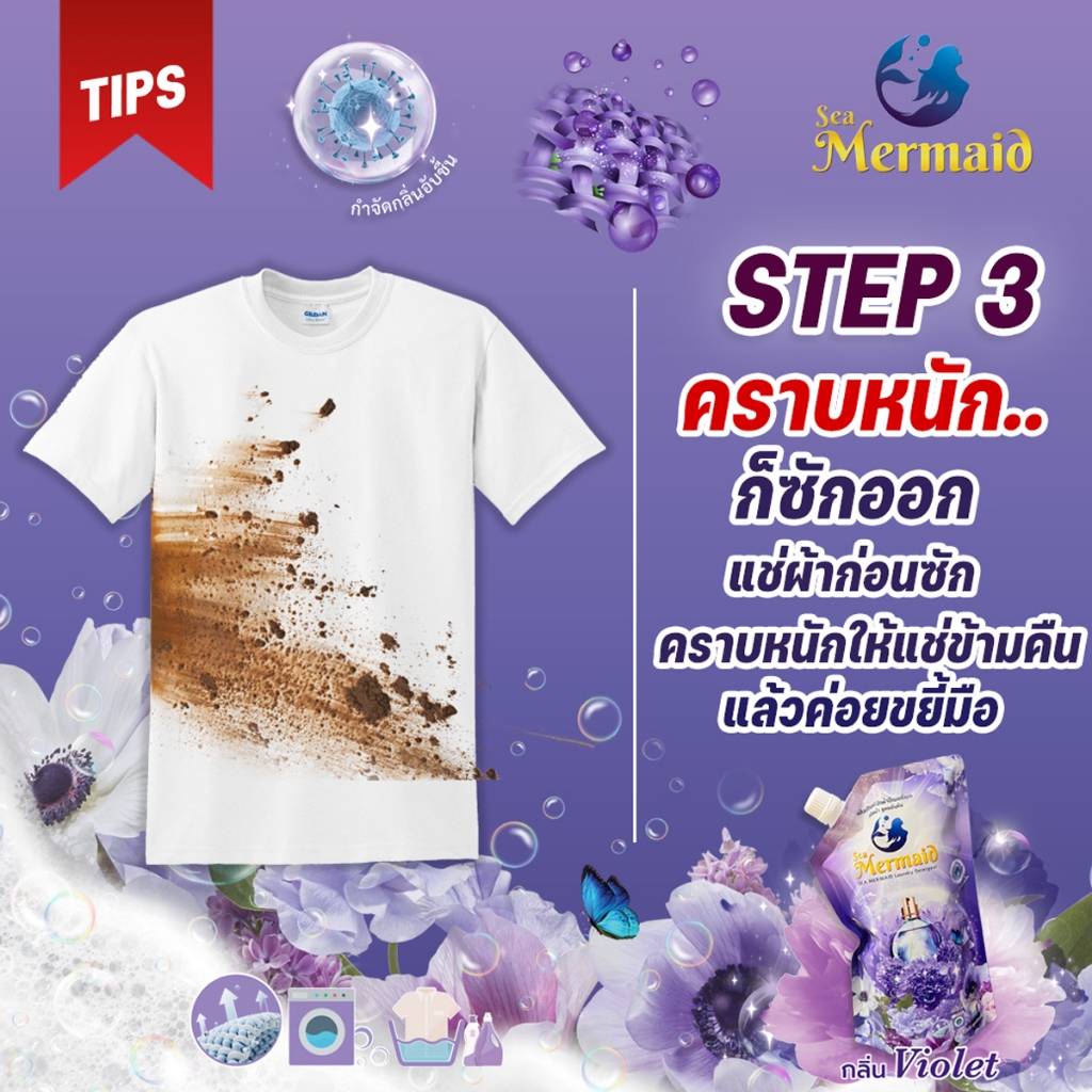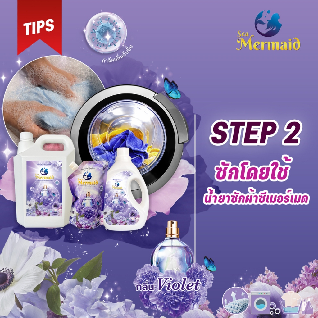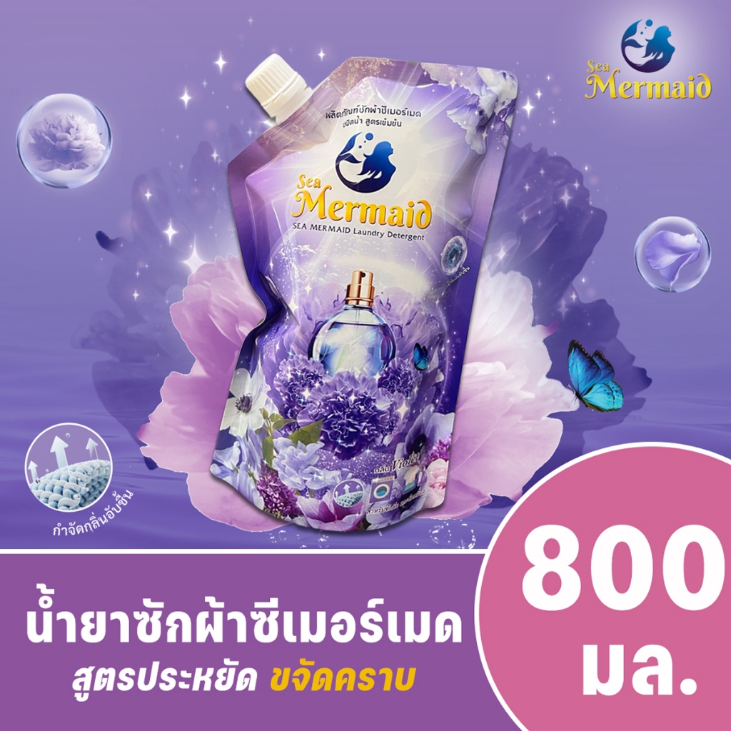 ใหม่! Sea Mermaid น้ำยาซักผ้าซีเมอร์เมด 8000 มล.(800มล.x10ซอง) กลิ่น Violet