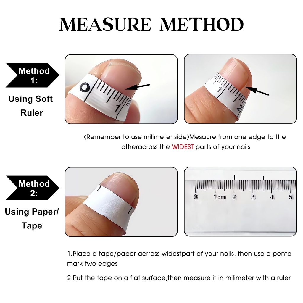 คุณสมบัติ: 1. หลายขนาด: เล็บปลอม 24 ชิ้นใน 12 ขนาดที่แตกต่างกันไม่ว่าเล็บของคุณจะมีขนาดเท่าใดคุณสามารถเลือกขนาดที่เหมาะสมที่สุดได้ คุณสามารถตัดแต่งและยื่นเป็นความยาวและรูปร่างที่คุณต้องการได้อย่างง่ายดาย 2. การออกแบบที่หรูหรา: เล็บปลอมเหล่านี้ทำให้เล็บของคุณสะดุดตาดูสมจริงสวมใส่สบายเหมาะสำหรั
