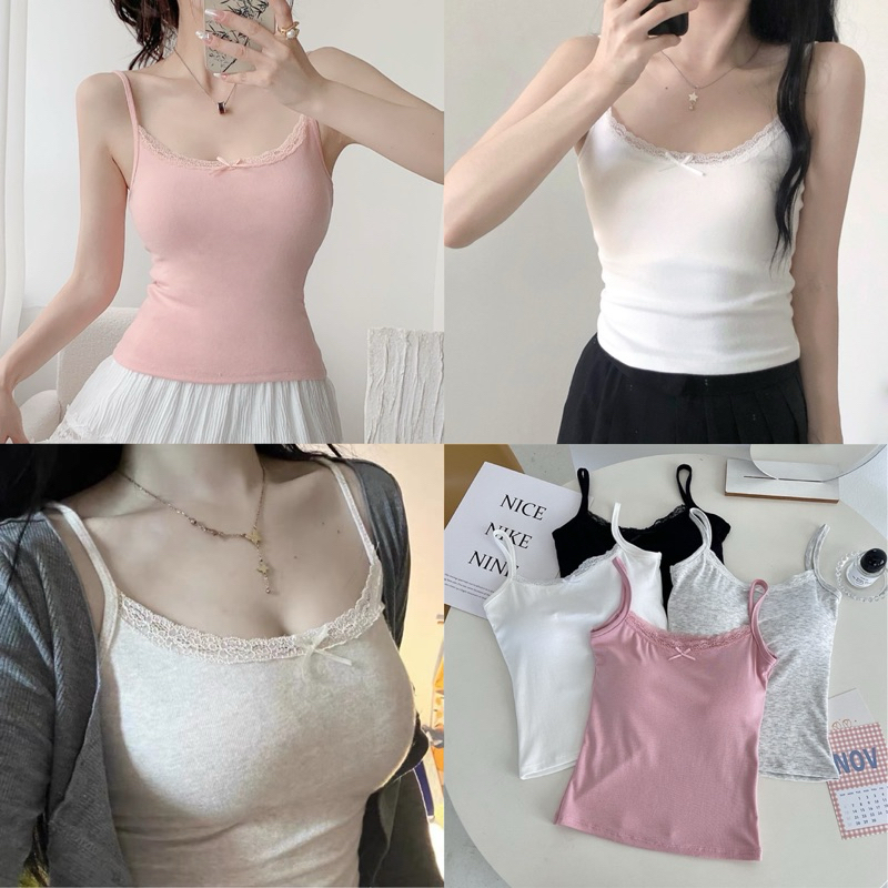 มาใหม่ เสื้อสายเดี่ยว ดีเทลโบว์ตรงกลาง มีฟองน้ำในตัว มินิมอลสไตล์เวียดนาม เกาหลีมาก พร้อมส่งในไทย แต่งตัวง่าย น่ารักก 🤍🎀
