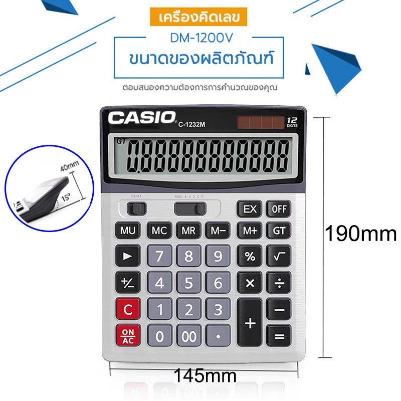 ของแท้100%【รับประกัน 5ป】 เครื่องคิดเลขCASIO DM-1200V หน้าจอ 12หลัก จอใหญ่ ใช้งานง่าย เครื่องคิดเลขขนาดใหญ่ ตั้งโต๊ะ