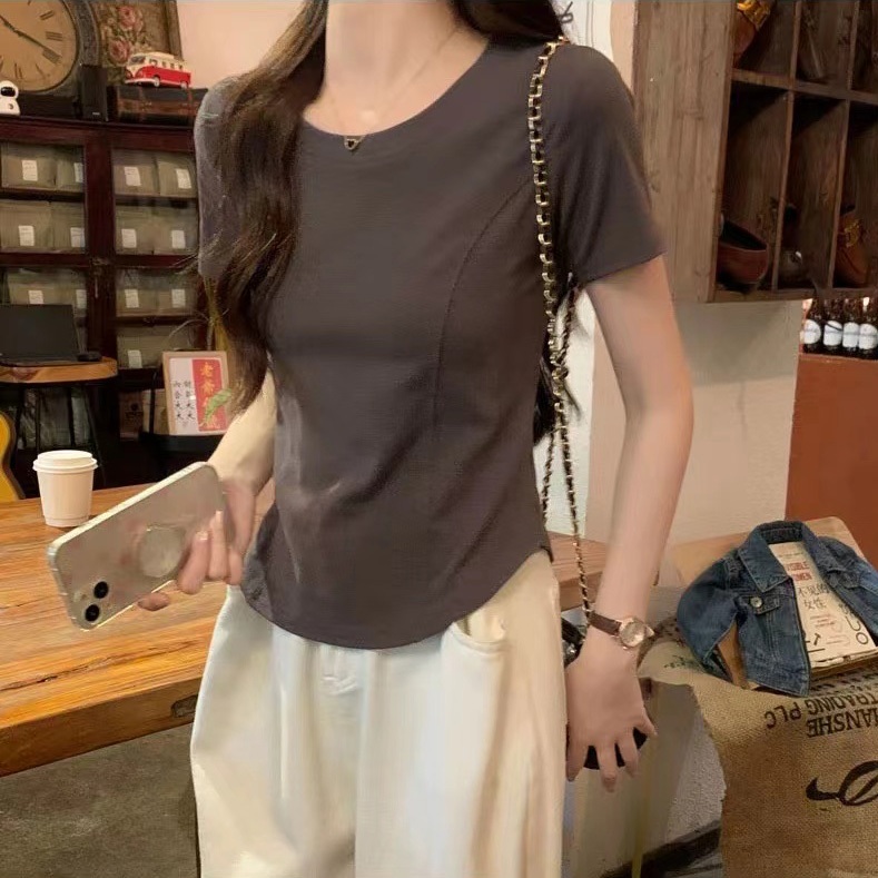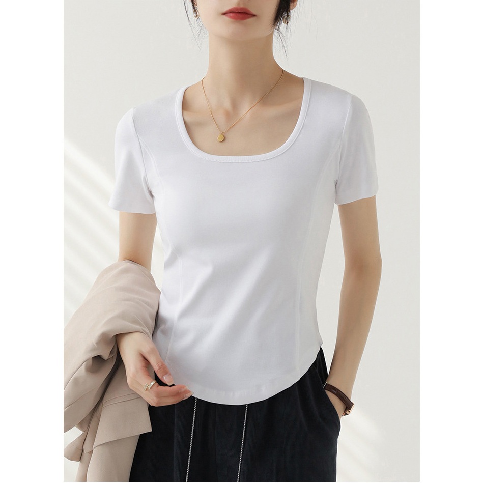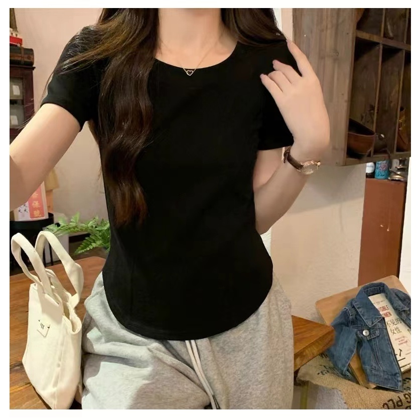🌸ส่งจากกทม🌼หญิงเสื้อยืดแขนสั้น เสื้อยืดคอก สีพื้น กาหลี ทรงสลิมฟิต ผ้านิ่มสวมใส่สบาย มีไซส์ S-XLกร