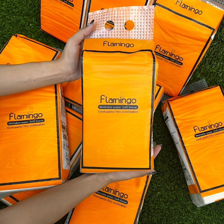 JMS STORE ทิชชูแบบดึงแขวนได้ [ 1ห่อ260ดึง ] 1040แผ่น กระดาษทิชชู (สีส้ม) หนา4ชั้น Flamingo