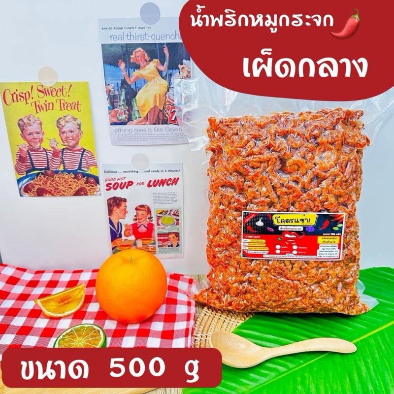 ส่งฟรี🥰น้ำพริกหมูกระจกโคตรแซ่บ ขนาด 500 กรัม