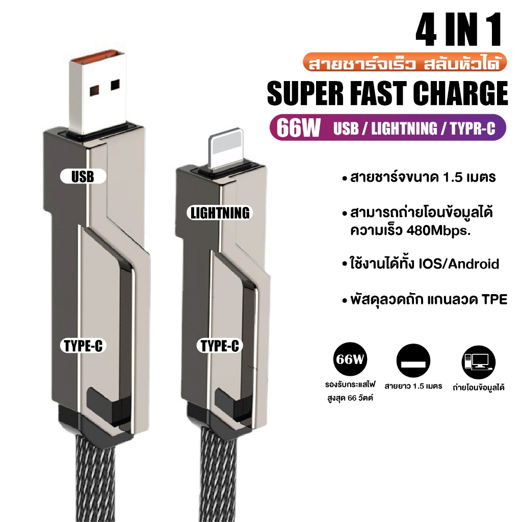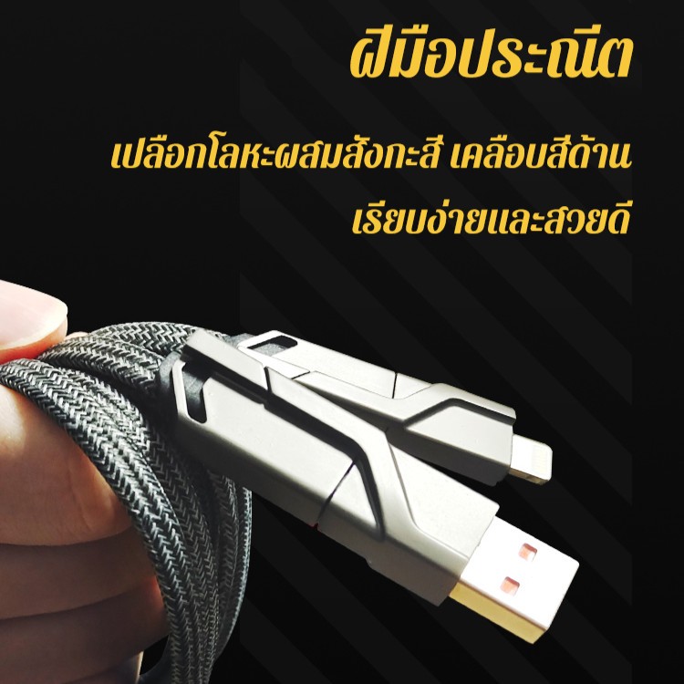 สายชาร์จ 4-in-1 สาย USB / Type C / L, สายชาร์จ Type C ถึง L ที่ชาร์จเร็วสูงสุด 27W และ Type C ถึง Type C 60W, รองรับ PD Fast Charging, ความยาวสายเคเบิล 2 ม. รูปแบบพลังงานที่มองเห็นได้เหมาะสำหรับผู้ที่ไม่ต้องการพกสายชาร์จจำนวนมากสายเคเบิลหลัก Type C ถึง Type C พร้อมอะแดปเตอร์, Type C ถึง L และสาย US