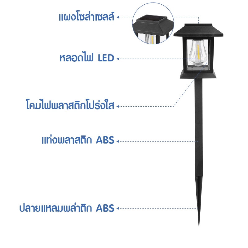 ** คุณสมบัติ ** - กลางวันไฟดับ เพื่อชาร์จพลังงานแสงอาทิตย์ และกลางคืนไฟติดอัตโนมัติ - ใช้พลังงานแสงอาทิตย์ 100% - ไฟสว่างนานแค่ไหน ขึ้นอยู่กับแสงแดดแต่ละวัน - ประหยัดค่าไฟ และประหยัดพลังงาน ** โคมไฟนี้เน้นเอาไว้ตกแต่งบ้าน ปักสนามเพื่อความสวยงาม ไม่ใช่โคมไฟส่องทางเดินเพื่อความสว่าง ** มีให้เ