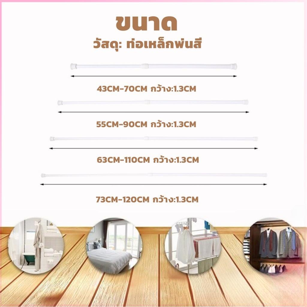 ... ได้ ยืดหดได้ (ไม่ต้องเจาะผนัง) -ติดตั้งเองได้ง่ายๆ โดยไม่ต้องเจาะผนัง ไม่ยุ่งยาก ไม่ทิ้งร่องรอยที่ผนัง หอพักใช้งานได้ -สามารถเลือกใช้งานร่วมกับ ม่านห้องน้ำ ม่านบาหลี ม่านประตู ม่านญี่ปุ่น ม่านตาไก่ หรือม่านแบบอื่นๆ -รับน้ำหนักของผ้าที่มีน้ำหนักเบา ไปจนถึงผ้าที่มีน้ำหนักขนาดปานกลาง ไม่ควรนำผ้าที่มีน้ำหนักมากมาใช้งาน