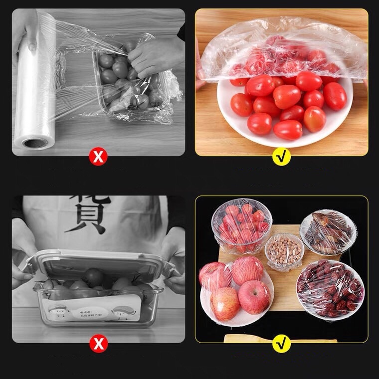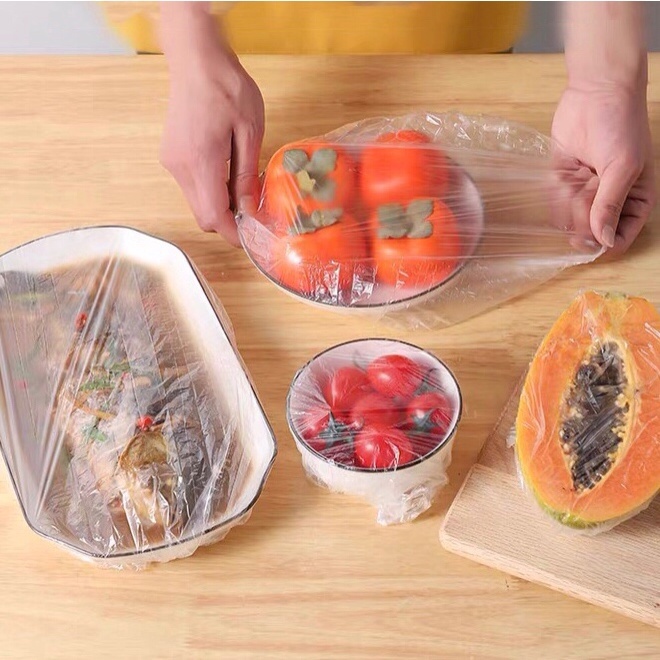แรปห่ออาหาร ถุงละประมาณ100ชิ้น ฟิล์มห่ออาหาร ถุงครอบถนอมอาหาร ยืดได้ แบบใช้แล้วทิ้ง