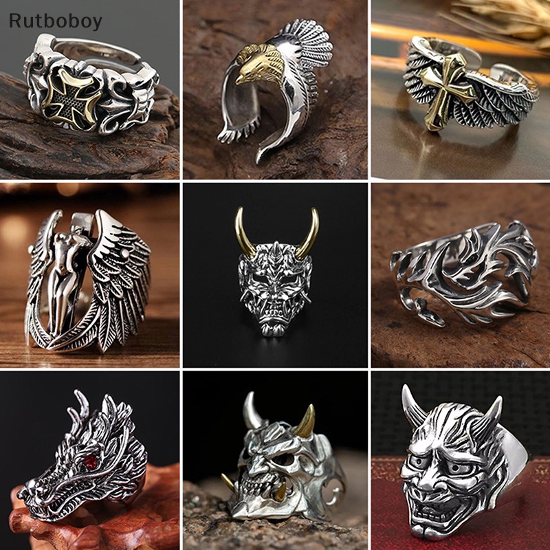 [Rut] แหวนแฟชั่น รูปนกอินทรีย์ ยูนิคอร์น ไม้กางเขน สไตล์จีน ฮิปฮอป ปรับได้ COD