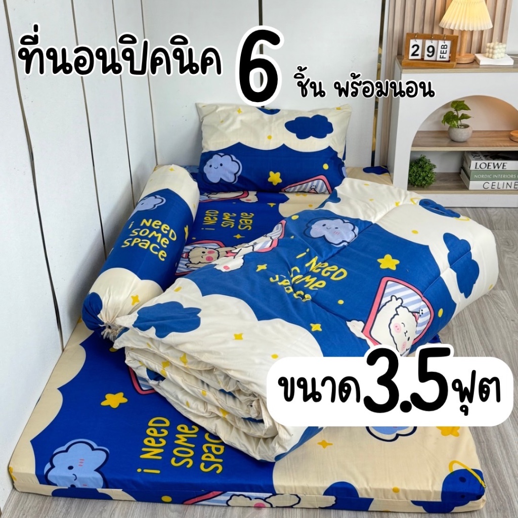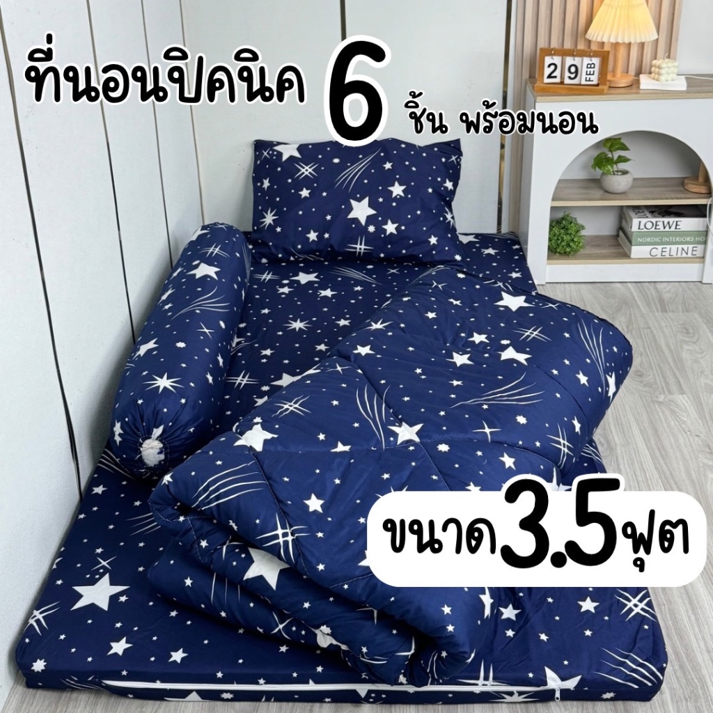 เซ็ตที่นอนปิคนิค 6 ชิ้น พร้อมนอน ปลอกซิปถอดซักได้ มีขนาด3.5 5 6 ฟุต พร้อมส่ง