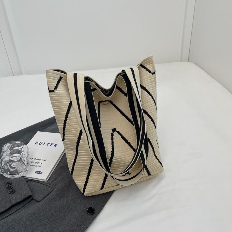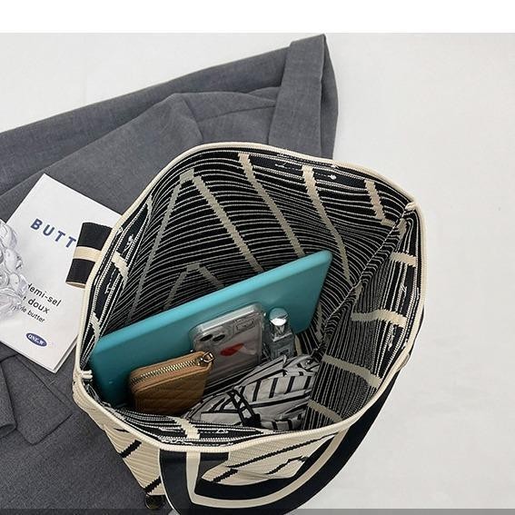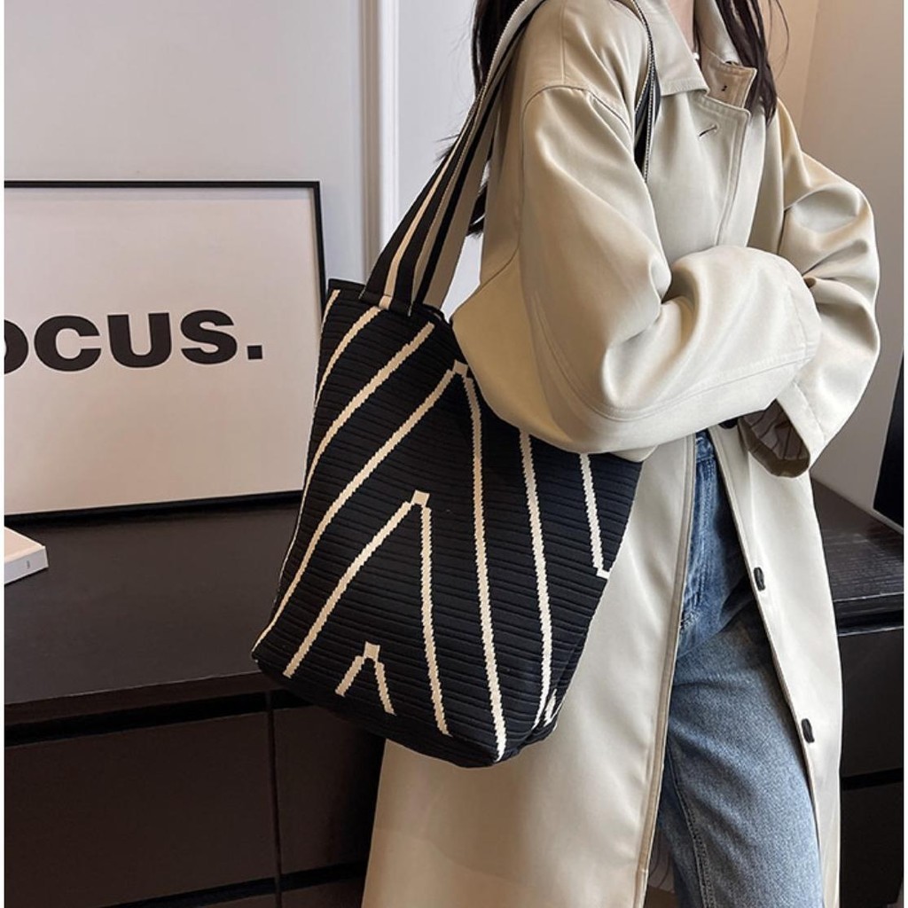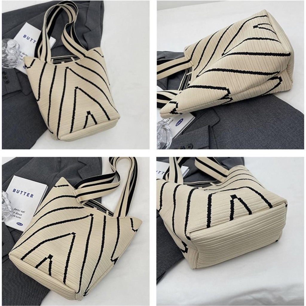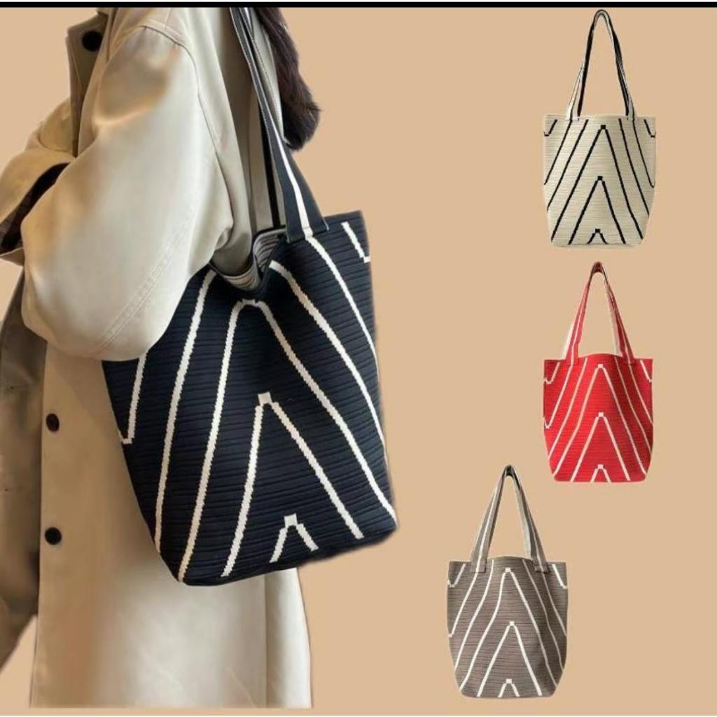 【พร้อมส่ง】miss bag fashion กระเป๋าช๊อปปิ้งไฮโซทอลายริ้ว กระเป๋าทรงสวย