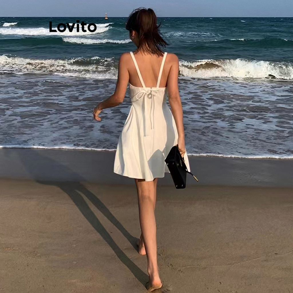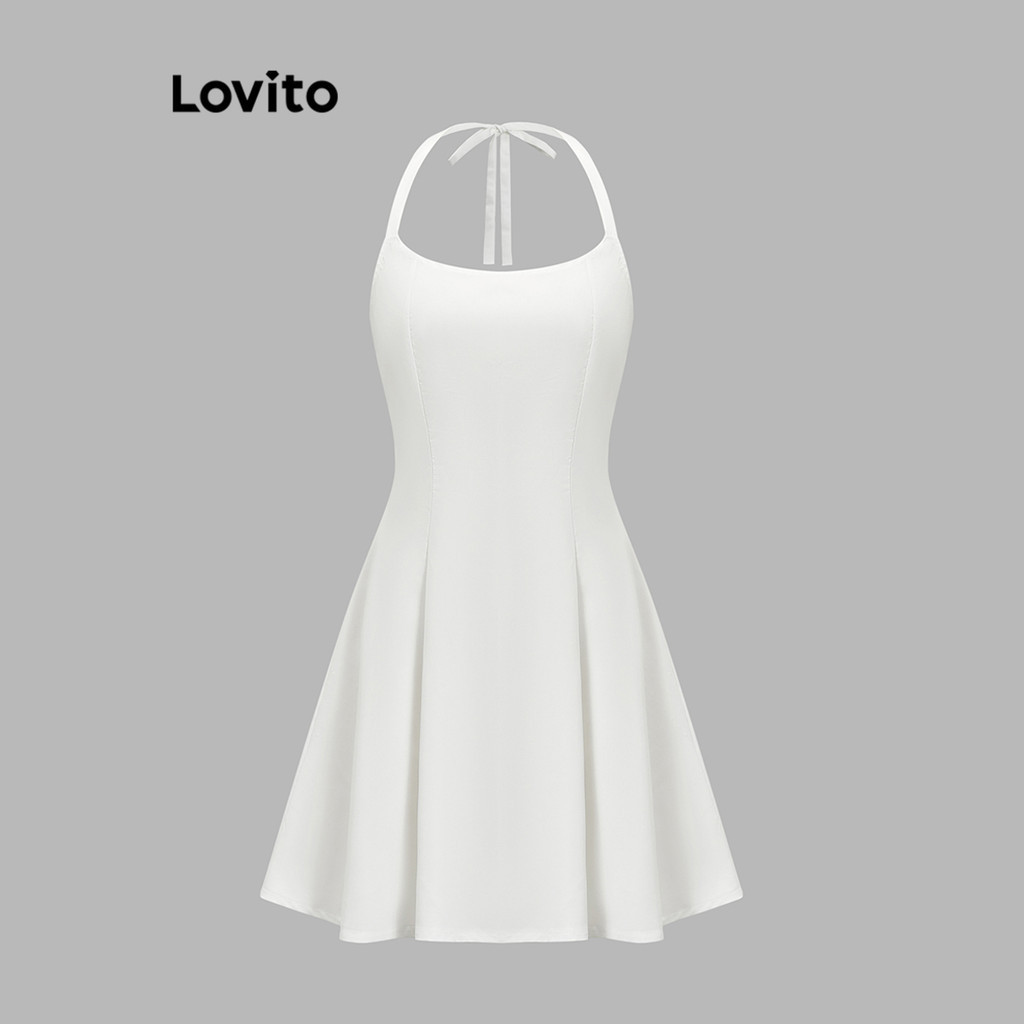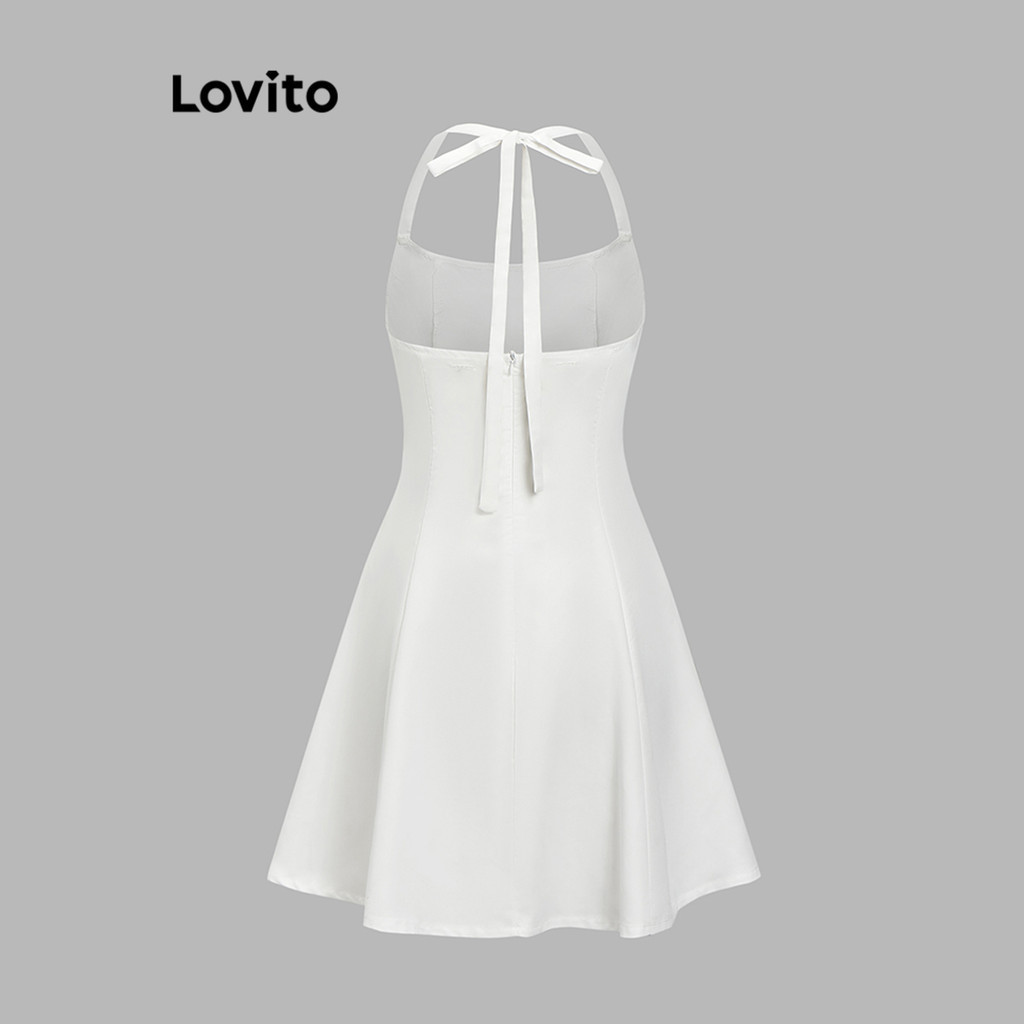 Lovito ชุดเดรสผู้หญิง ทรงเอ แบบผูกหลัง สีพื้น สไตล์หรูหรา L80ED313