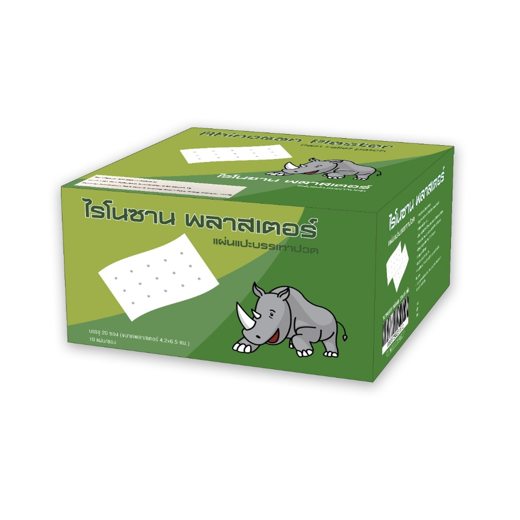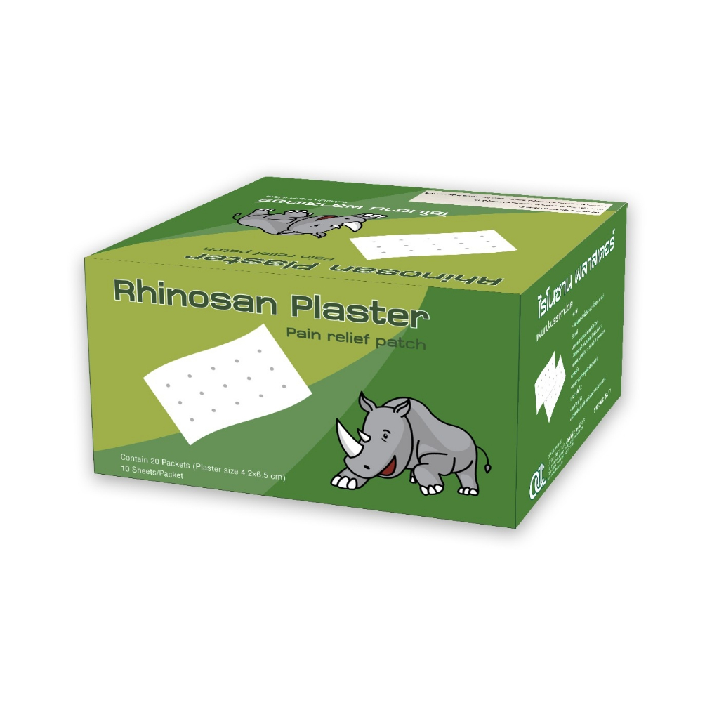 ไรโนซาน พลาสเตอร์ RHINOSAN PLASTER กอเอี๊ยะบรรเทาปวด - กอเอี๊ยะ บรรเทาอาการปวด - แผ่นยืดหยุ่น ระบายอากาศได้ดี - ติดแน่น ติดทนแม้บริเวณข้อพับต่างๆ - ลอกออกง่าย ไม่ทิ้งคราบกาว - บรรจุ 10 ชิ้น/ซอง,20ซอง/กล่อง