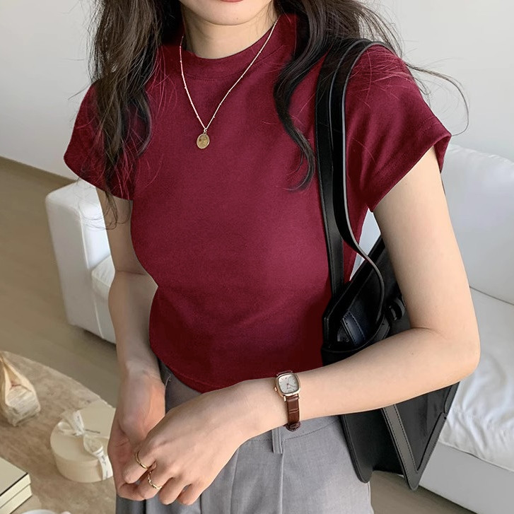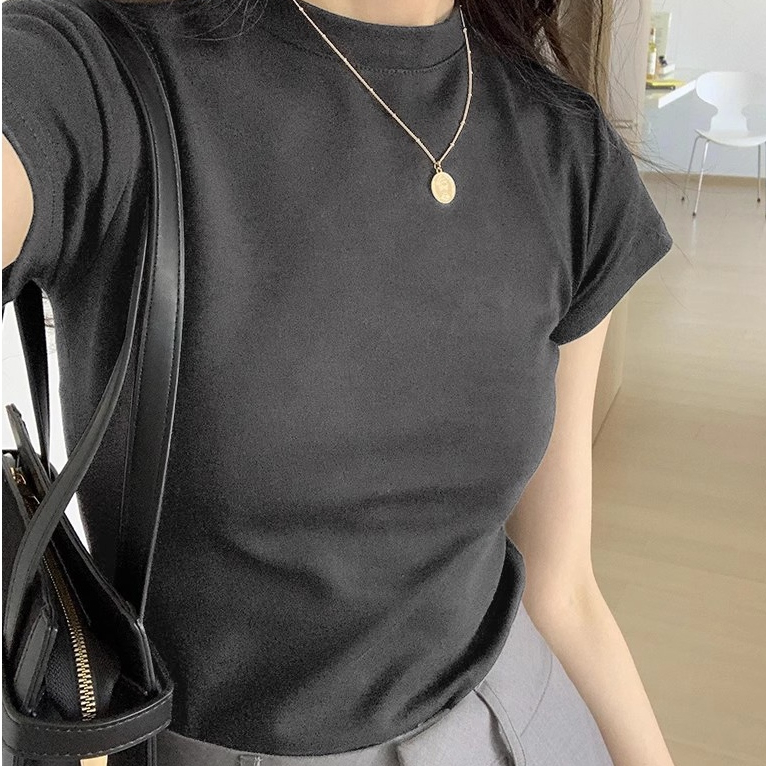 15สี เสื้อครอป เสื้อผ้าแฟชั่นผู้หญิง ทรงเบสิคแมตช์ง่ายชิลๆ สีพื้น คอกลม #J227