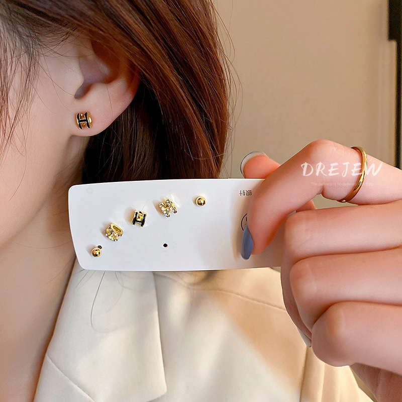 Drejew ชุดต่างหูเข็มเงิน 925 ประดับเพชร รูปตัวอักษร H สไตล์เกาหลี 6 ชิ้น