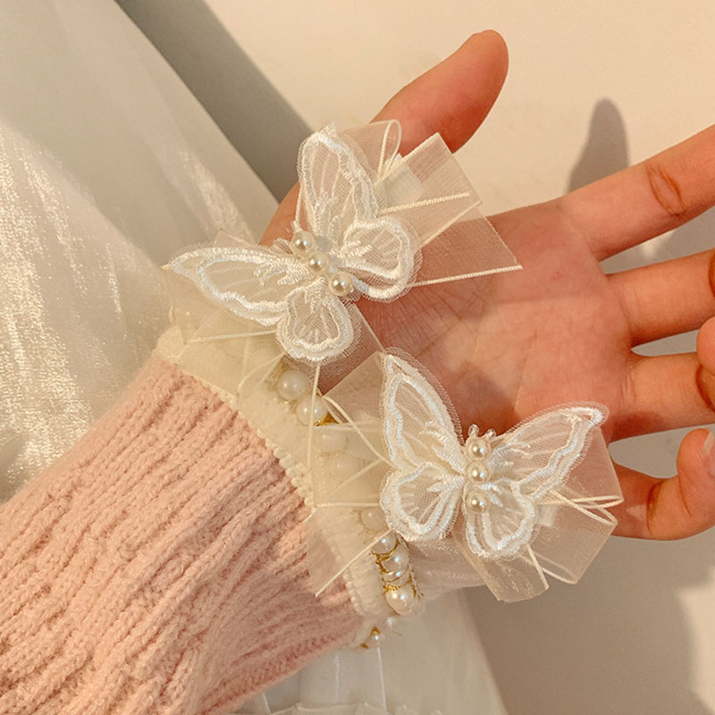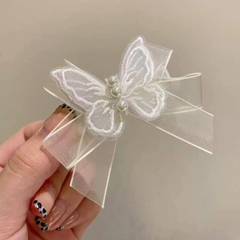 กิ๊บติดผม ผ้ากอซ ประดับโบว์ แต่งลูกไม้ และผีเสื้อ มีหลายชั้น สีขาว แฟชั่นแฟรี่ สําหรับผู้หญิง และนักเรียน
