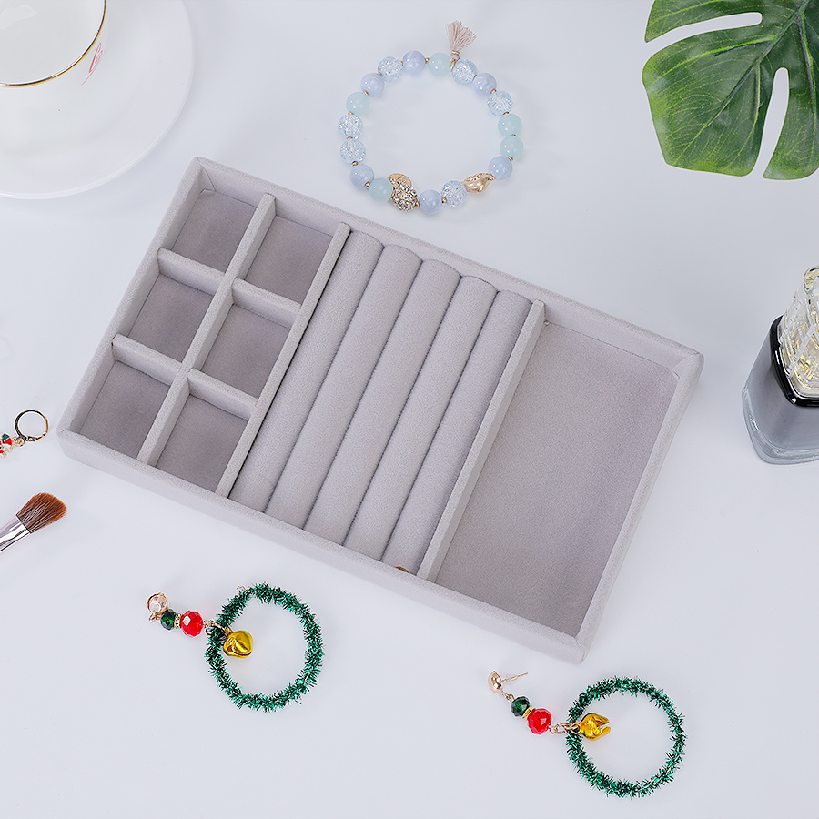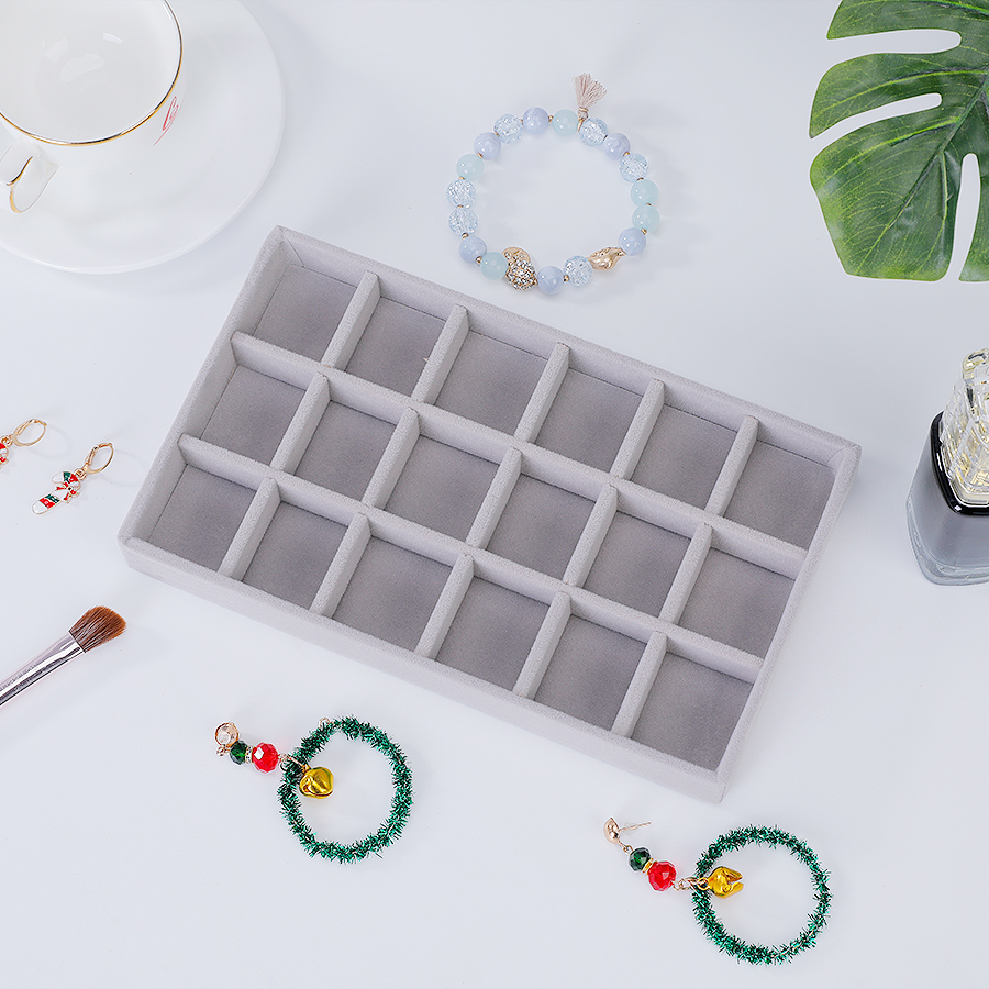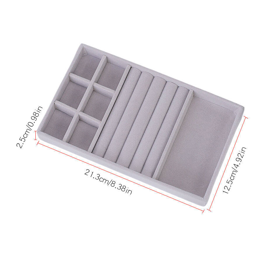 1ชิ้น, แห่กัน กล่องเครื่องประดับถาดสี:สีเทา.เหมาะสําหรับ: ต่างหู, ต่างหู, ต่างหู, กําไล, สร้อยคอและที่เก็บเครื่องประดับอื่นๆ.ขนาดเดียวคือ: 21 * 12.3 * 2.5ซม