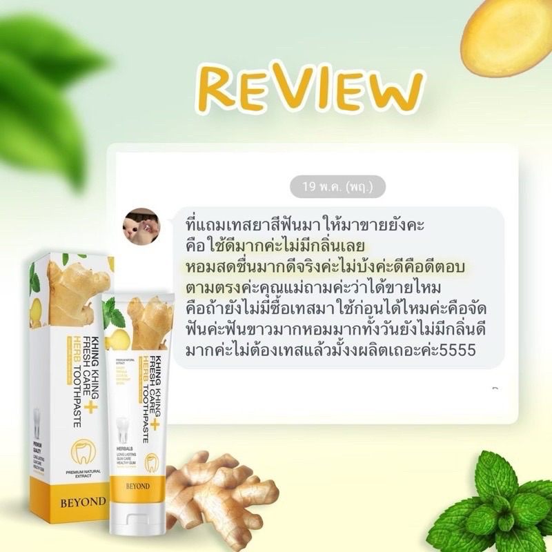 ไม่อยากบอกว่าดีแค่ไหน ? แต่อยากไห้ลองด้วยตัวเอง ยาสีฟันขิงขิง ลดกลิ่นปาก Beyond เนื้อเข้มข้น ลดกลิ่นปาก ลดกินปูน ลดคราบ ฟันขาว สะอาด จูบใคร ใครก็หลงรัก ❤️ 1 แถม 1 290 บาท 2 แถม 2 580 บาท 3 แถม 3 850 บาท สารสกัดออแกร์นิคแท้ 100% ละเอียดไม่ทำลายเนื้อฟัน 🍀 ระงับกลิ่นปาก นาน 12 ชั่วโมง