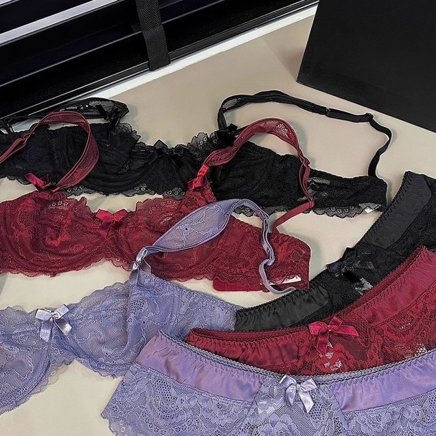 ชุดชั้นในเซ็กซี่ แบบบาง แต่งลูกไม้ แต่งรูกลวง สีโปร่งใส สําหรับผู้หญิง