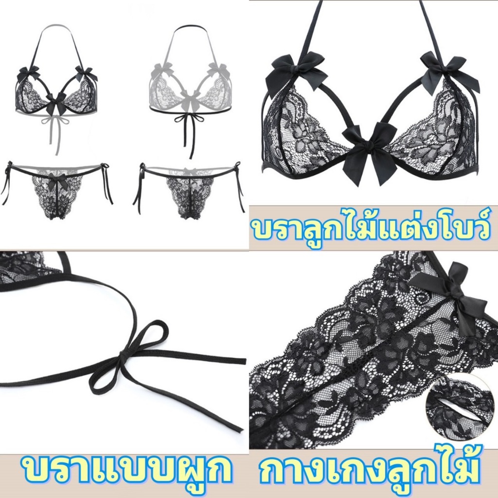 ชุดชั้นในเซ็กซี่ ชุดบิกีนี่ ชุดนอนไม่ได้นอน สายคล้องคอกับสายผูกโบว์หลัง ชิ้นล่างเป็นกางเกงใน L-356