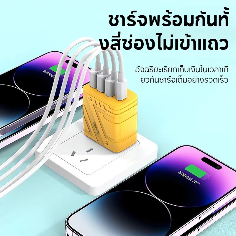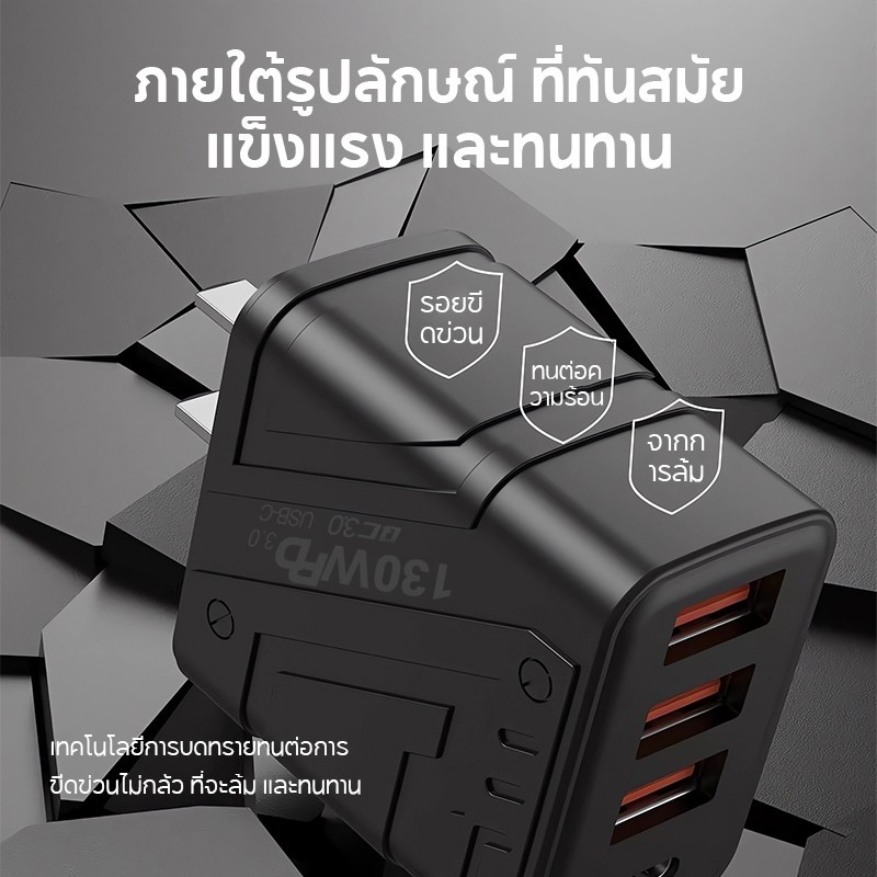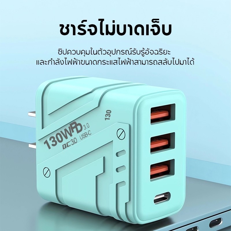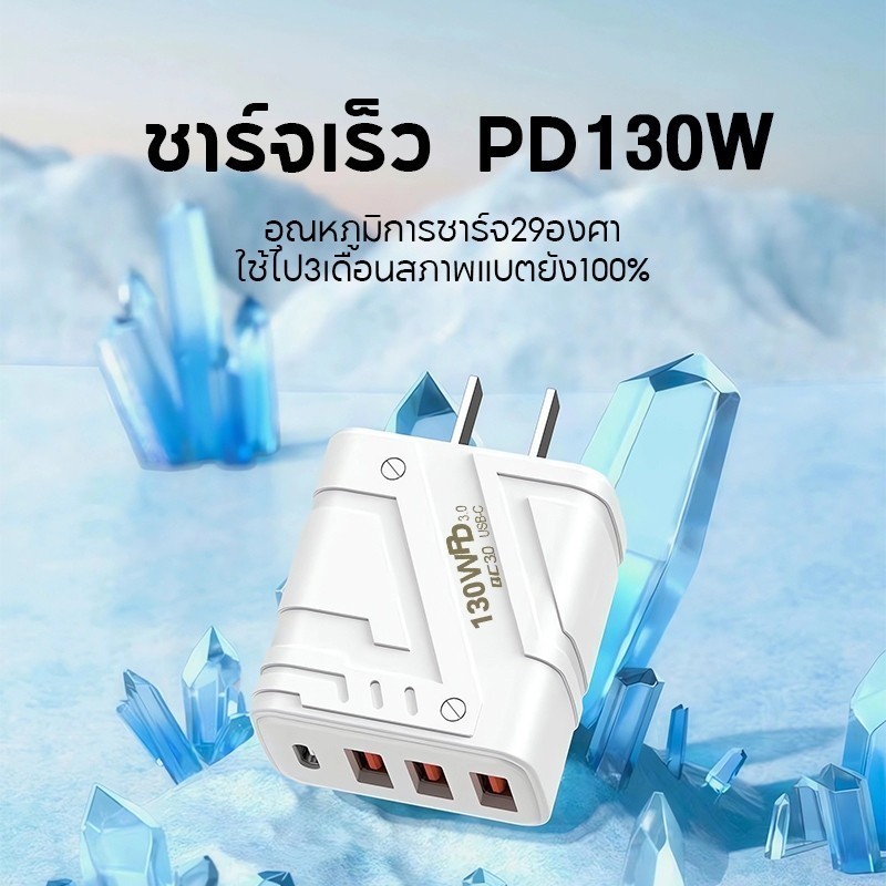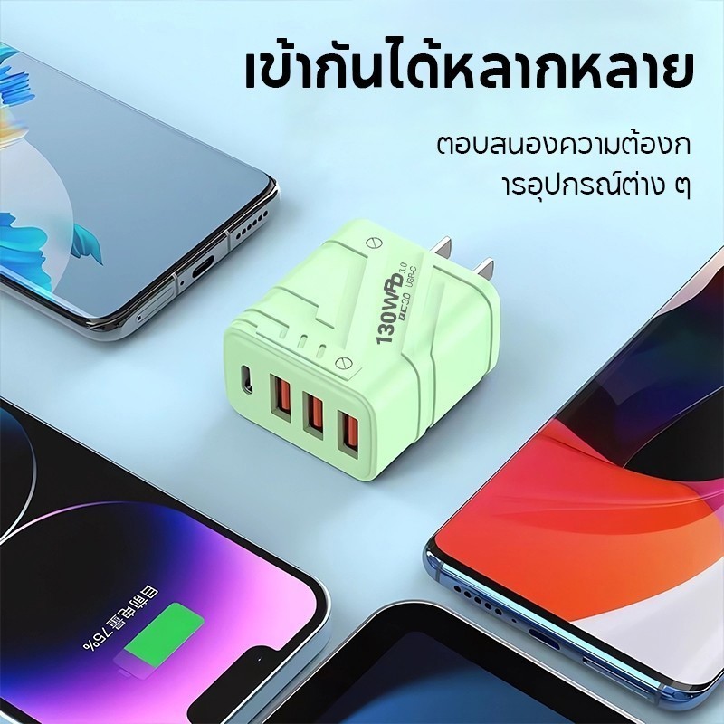สายชาร์จ ชาร์จไว PD 130W สายชาต หัวชาร์จ 3USB + 1usb-c รองรับ type-c ซีรีส์ทั้งหมด