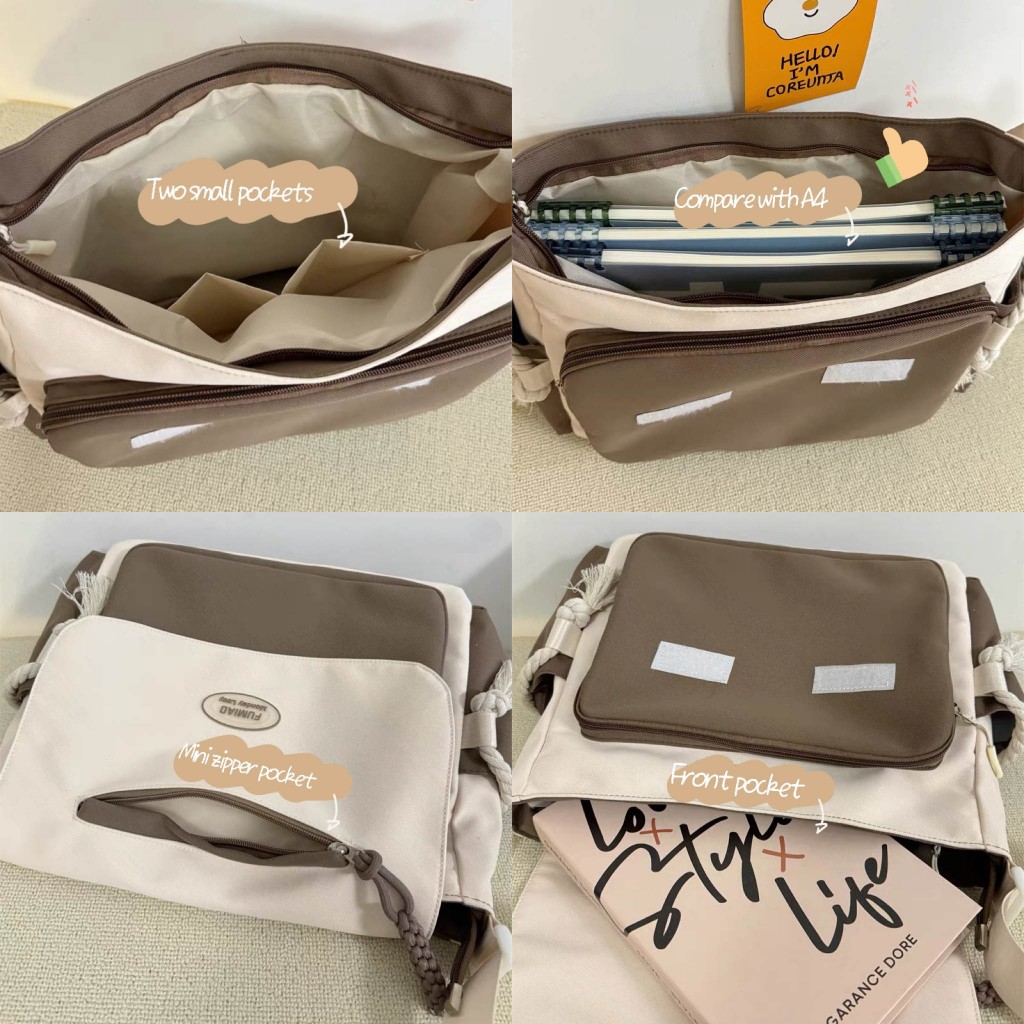 หมวดหมู่ : กระเป๋าสะพาย วัสดุ: โพลีเอสเตอร์ องค์ประกอบยอดนิยม: การจับคู่สี สไตล์: วิทยาลัย วิธีการปิด: ซิป ขนาด: 31*25*7.5ซม ความจุ: คอมพิวเตอร์ขนาด A4/11 นิ้ว ฟังก์ชัน: กันน้ำ