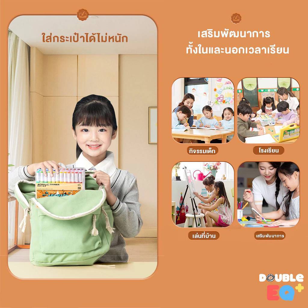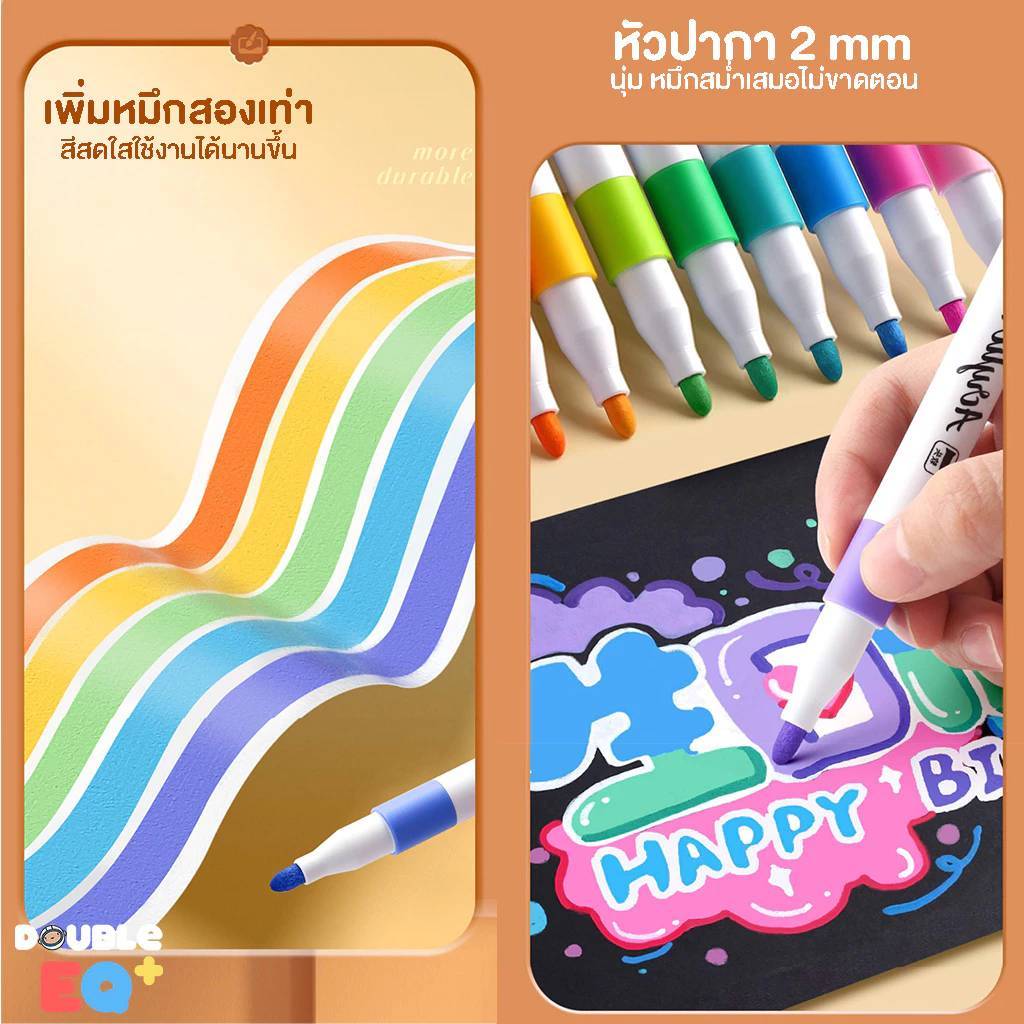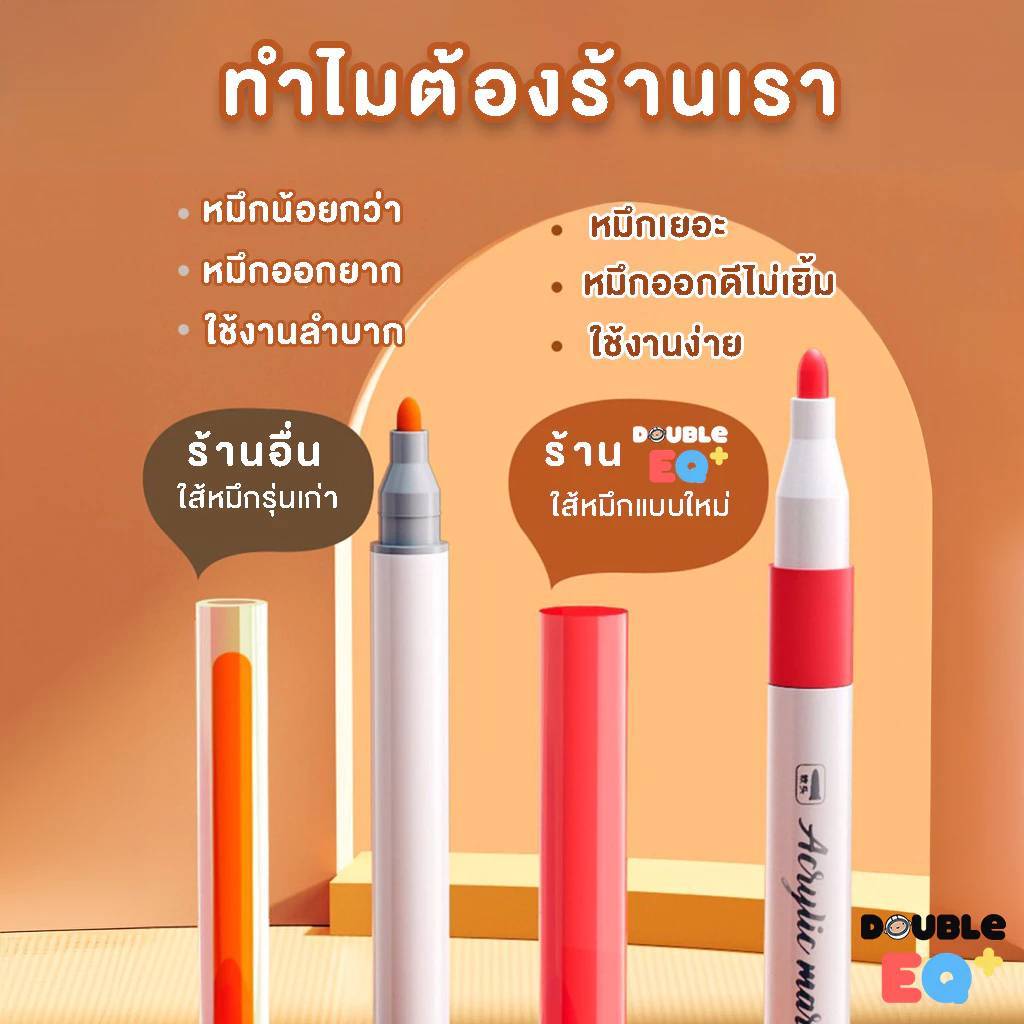 ... กาตัน [มั่นใจเลือกใช้ Double EQ Plus] ปากกา เกรด Super premium จากร้าน Double EQ Plus ✔️ปากกา อะคริลิค หมึกชนิดพิเศษ ✔️เปิดฝาใช้ได้เลย ✔️หมึกชนิดพิเศษไม่ตัน ไม่ต้องคอยกด เลี้ยงหมึก ✔️ปริมาณน้ำหมึกมากกว่า ร้านอื่น 2-3 เท่า ✔️สีสดใส รายละเอียดสินค้า Set Pro : หมึกเยอะขึ้น 50% น้ำหมึกเกรดพรีเมียม เนื้อสีสดใส ไม่อุดตันหัวปากกา ทำให้สีออกสม่ำเสมอ กันน้ำ ติดทนดีสุด หัวปากกา 2 mm Set ธรรมดา : หมึกชนิดพิเศษ ไม่อุดตันหัวปากกา สีสันสดใส ออกทั่วถึง เขียนติดดี กันน้ำ ติดทนดีสุด (หมึกน้อยกว่า Set Pro) หัวปากก 1 mm Set สี พาสเทล : สีโทนมาการอง มีกล่องเก็บ สีนุ่ม ดูแพง ถึงสีจะออกเบส พาสเทล แต่ หมึกสีออกชัด ไม่ตันหัวปากกา สีสด มีกล่อง หัวปากกา 4 mm สามารถเขียน ได้ทุกพื้นผิว : กระดาษ สีขาว/ดำ แก้ว กระจก เหล็ก ไม้ หิน พลาสติก ผ้า ยาง อะคริลิค etc. ** ระวังสินค้าเลียนแบบ ** ลูกค้าเลื่อนดูชื่อร้านค้า กันด้วยน้าาา Double EQ plus มีร้านดียว ไม่มีสาขาชื่อแปลกๆ จ้า [สินค้าปลอมอาจลดคุณภาพหมึก โดยใช้สารระเหยอันตรายเพื่อสีสันที่สดใส อาจะมีอันตรายต่อสุขภาพ]