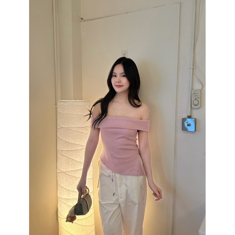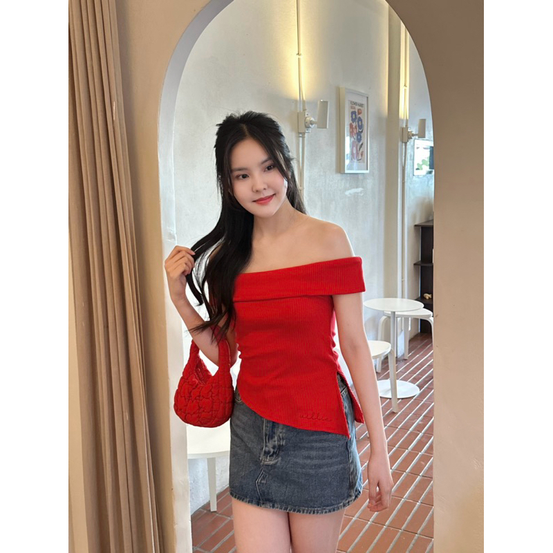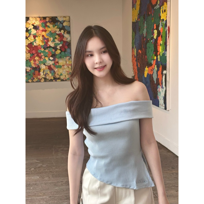 villie hailey top เสื้อปาดไหล่ ดีเทลพับ ปลายเสื้อตัดเฉียง