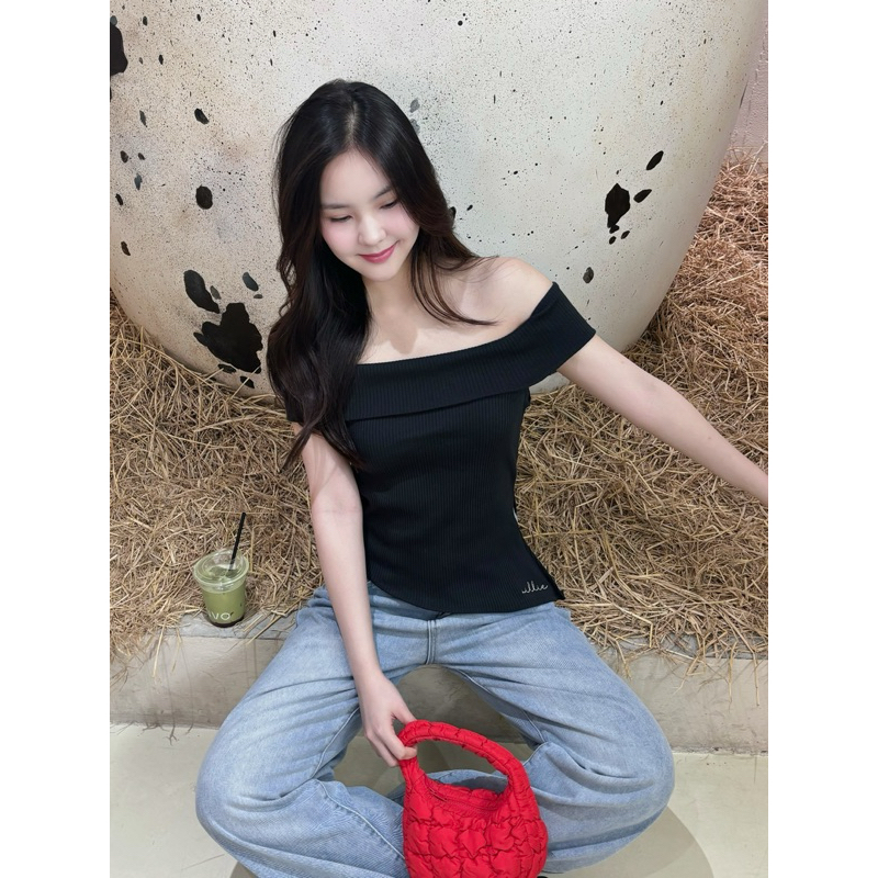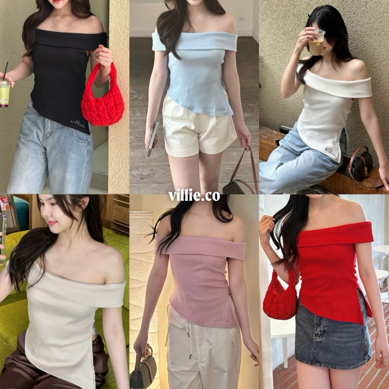 NEW IN🍾✨ villie Hailey Top เสื้อปาดไหล่ทรงพับสุดคิ้วท์ ตัวนี้ใส่แล้วน่ารักแน่นอน เนื้อผ้า rib knit อย่างดี ผ้ามีความยืดหยุ่นได้สูง สวมใส่สบาย แต่ยังเก็บทรงสวย ผ้าเนื้อดีไม่บาง ตรงปลายเสื้อเป็นทรงปลายตัดเฉียงเล็กน้อย ทรงยาวปิดท่อนล่างแบบกำลังดี ช่วยเสริมลุคให้ดูมีอะไรมากขึ้น ดีเทลปัก villie ตร