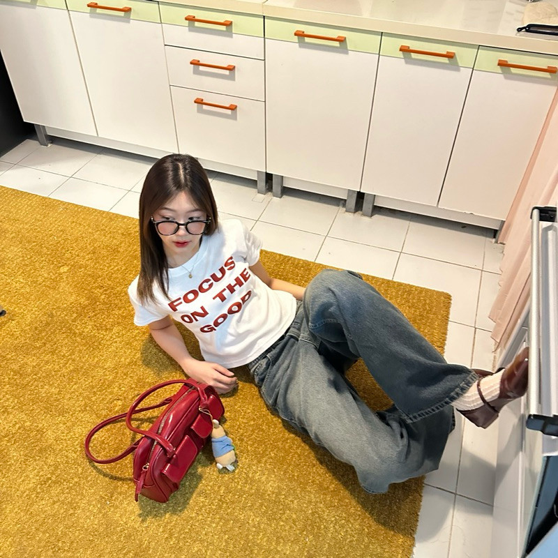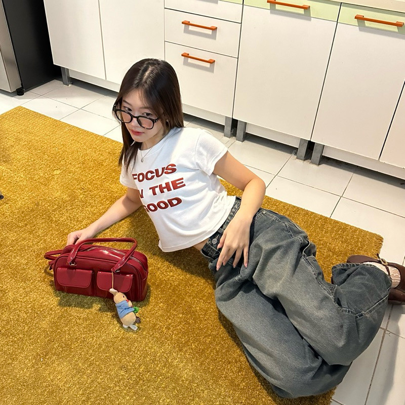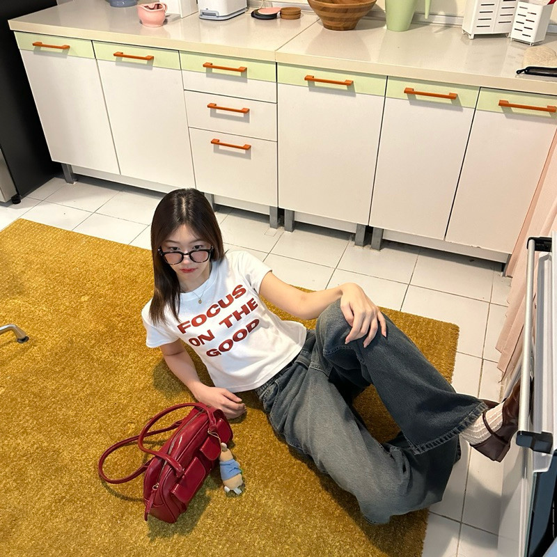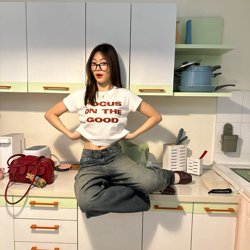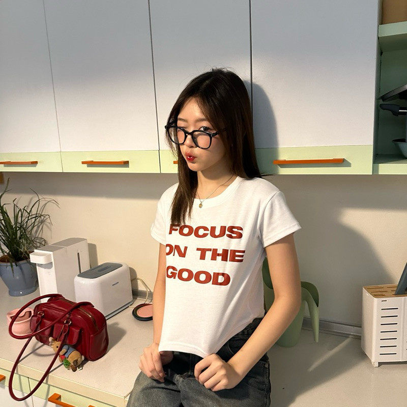 (จัดส่งตลอด 24 ชั่วโมง)Angle Official feel good crop top 🍒เสื้อยืดแขนสั้นสไตล์เกาหลี Y2K สำหรับผู้หญิง เทรนด์มิลเลนเนียล