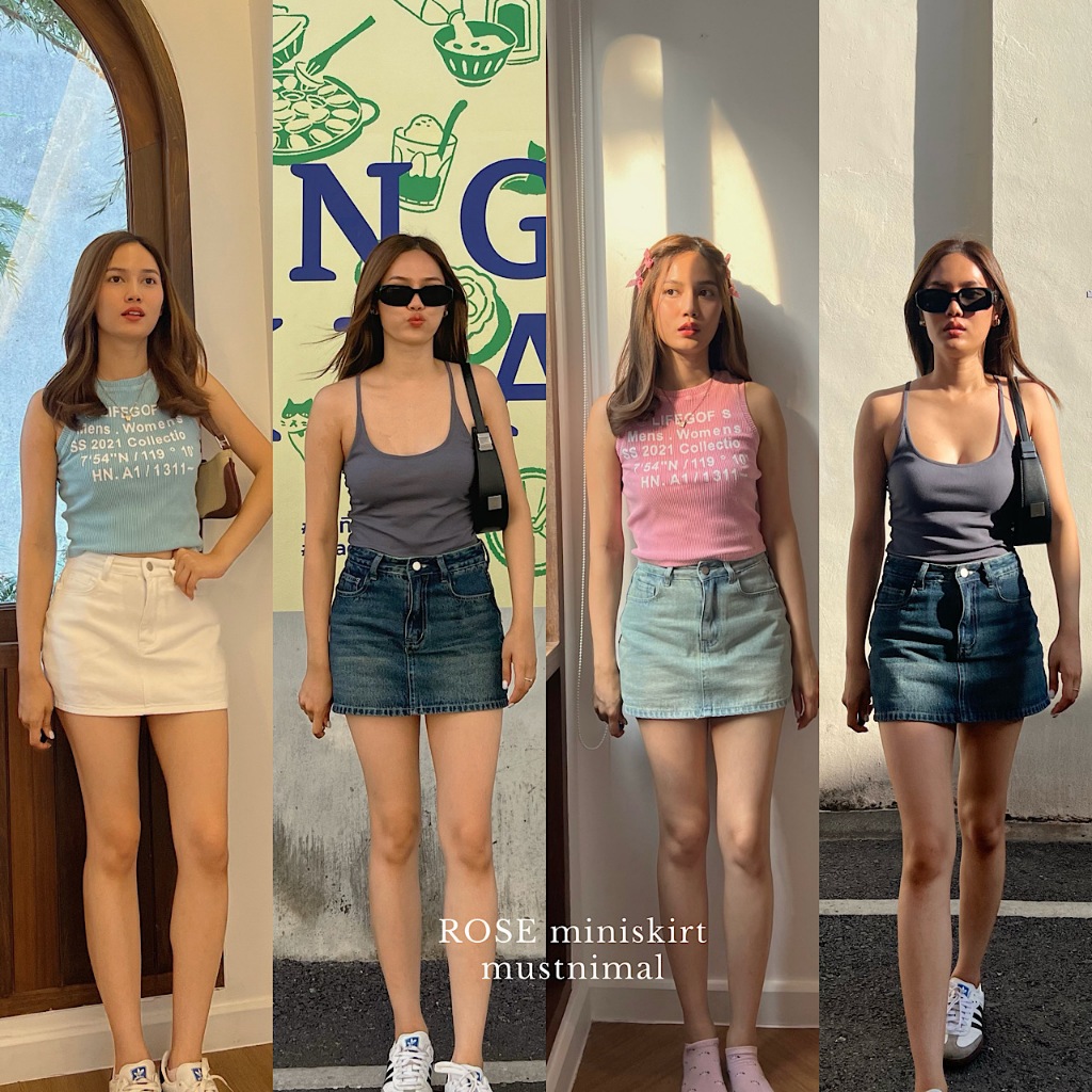 (พร้อมส่ง) MUSTNIMAL | Rose miniskirt กระโปรงยีนส์สั้นเกาหลี 0061
