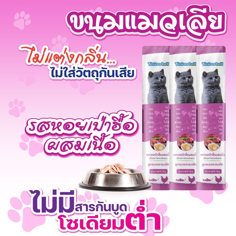 🔥พร้อมส่ง🔥ส่งจากไทย ขนมแมวเลีย ขนาด16กรัม รสชาติอร่อยถูกใจน้องเหมียว ชอบมากมีให้เลือก 5 รส อาหารเปียกแมว อาหารซอง 1บาท