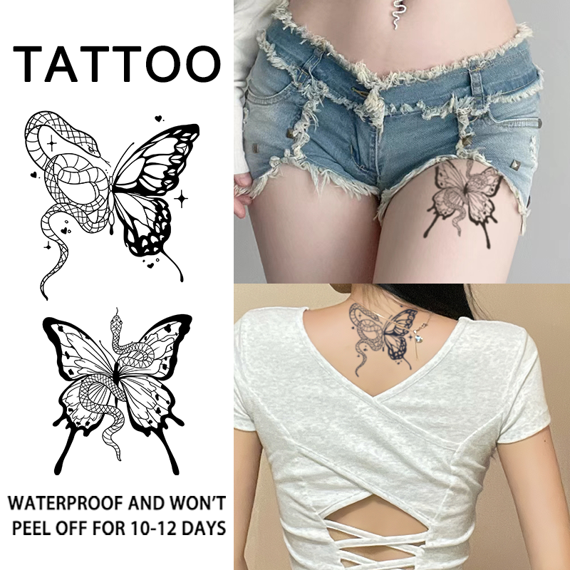 สติกเกอร์รอยสักชั่วคราว ลายผีเสื้อ กันน้ํา ติดทนนาน สําหรับผู้ชาย และผู้หญิง