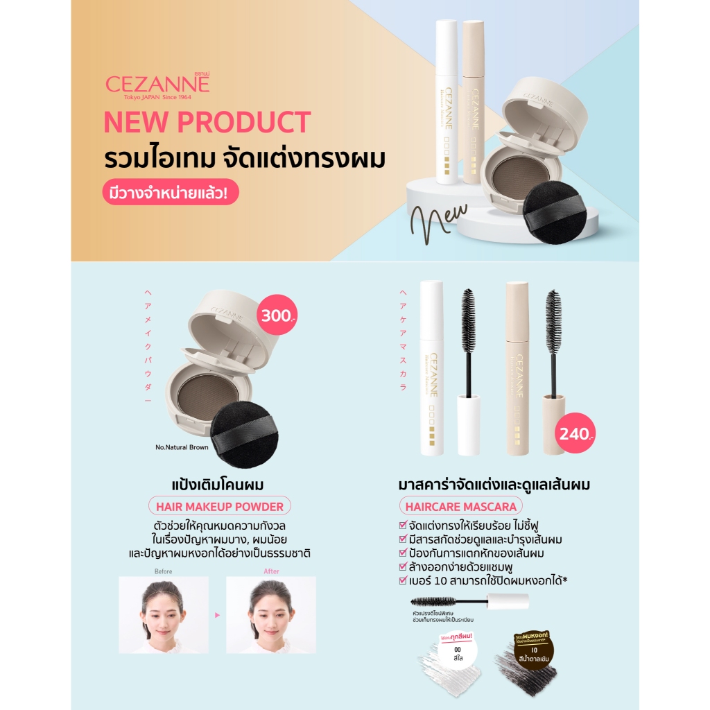 CEZANNE Haircare Mascara 10 ml ราคา 240 บาท ヘアケアマスカラ 〔 เซซาน แฮร์แคร์ มาสคาร่า 〕 มาสคาร่าจัดแต่งทรงผมที่ไม่เป็นเพียงตัวช่วยในการเก็บเส้นผมที่ชี้ฟูของคุณให้อยู่ทรงเรียบร้อยตลอดวัน แต่ยังมีสารสกัดที่ช่วยในการบำรุงและดูแลเส้นผมของคุณได้อย่างมีประสิทธิภาพ ♡ • ตัวช่วยในการจัดแต่งทรงผมอย่างรวดเร็