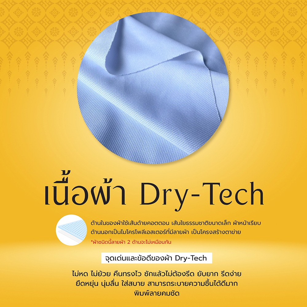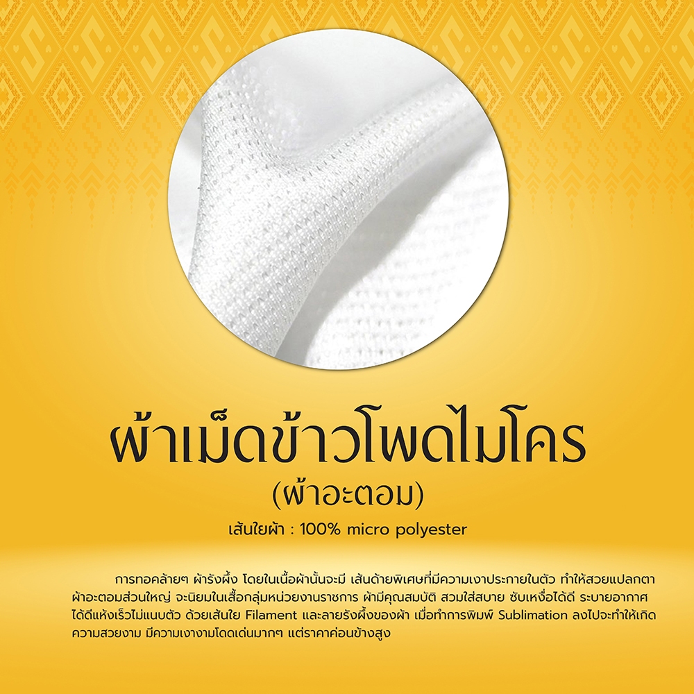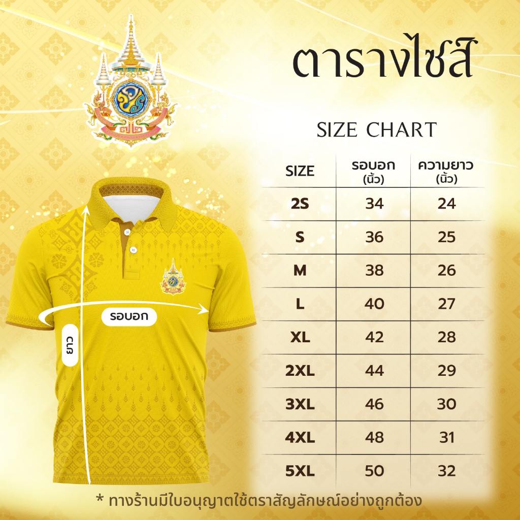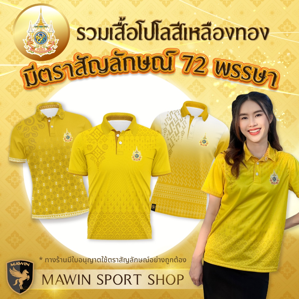 เสื้อโปโลสีเหลืองทอง พิมพ์ตราสัญลักษณ์ 72พรรษา ใส่ได้ทั้งชายและหญิง *** ทางร้านมีใบอนุญาตใช้ตราสัญลักษณ์อย่างถูกต้อง ** ลายไทยจตุรัก ผลิตจากผ้า Dry-Tech ลายดอกรักราชกัญญา ผลิตจากผ้าเม็ดข้าวโพดไมโคร ลายขอพระราชทาน ผลิตจากผ้าเม็ดข้าวโพดไมโคร เนื้อผ้าพิมพ์ลายคมชัด เป็นประกายดูมีมิติ ยืดหยุ่นปาน
