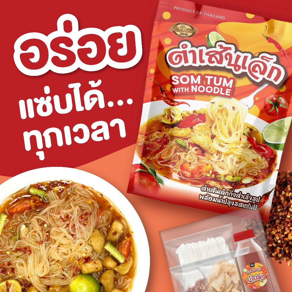 มิสดรีม ตำเส้นเล็ก 1 ห่อ บรรจุ 2 ชุด มี 3 สูตร ให้เลือก -สูตร มีปลาร้า (ที่ห่อไม่ติด สตก.รส) -สูตร ตำปู (น้ำปูร้าล้วน) -สูตร ตำไท (ไม่ใส่น้ำปูร้า ไม่ใส่น้ำปลาร้า) **1 ชุด ประกอบไปด้วย -น้ำปรุง -เส้นเล็ก -กระเทียม -กากหมู