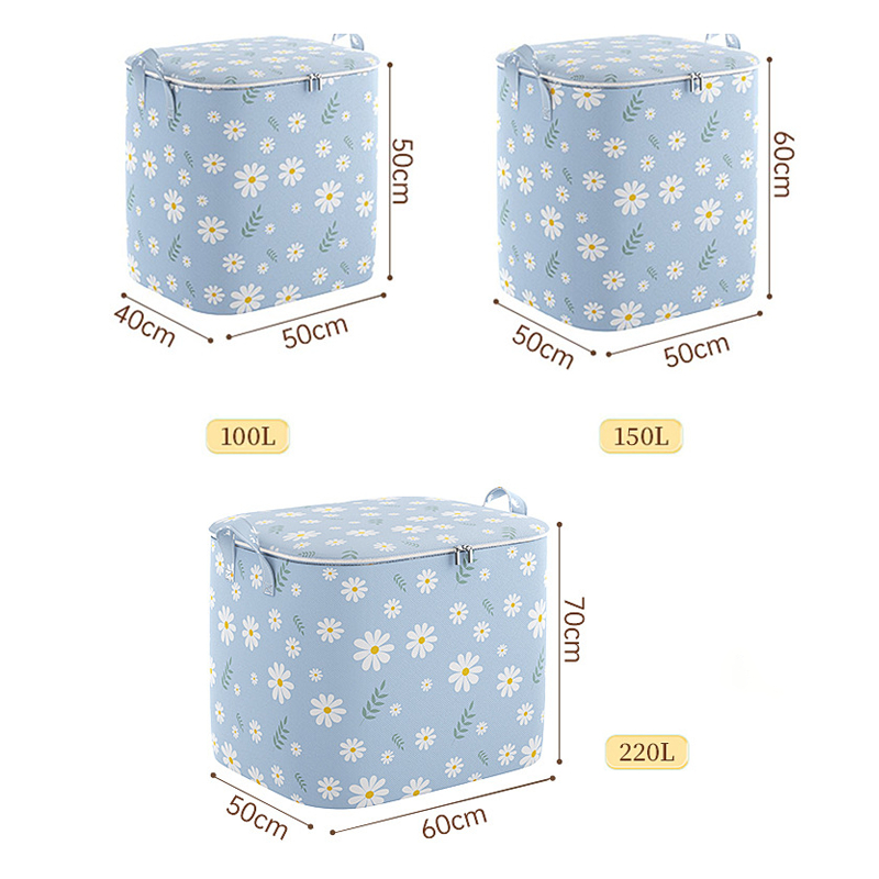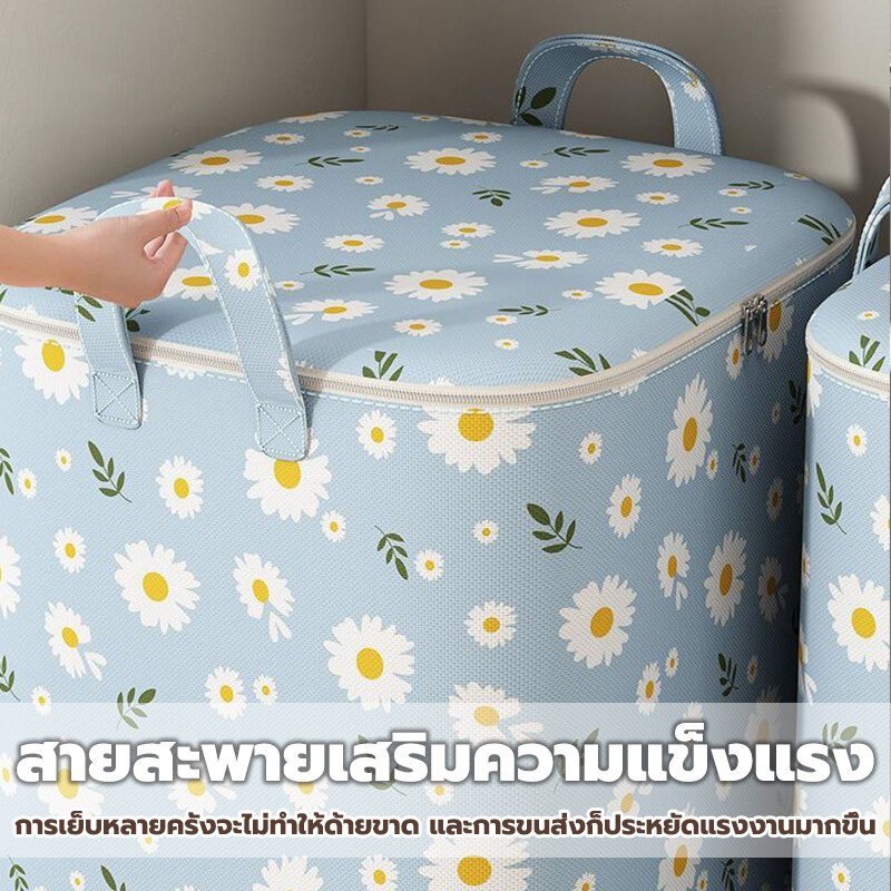 กระเป๋าเก็บของ กระเป๋าเก็บผ้านวม 140L/180L ผ้าหนา กันน้ำและกันฝุ่น ผ้าไม่ทอ พับได้ มีซิป ความจุขนาดใหญ่ ลายดอกไม้สีฟ้า