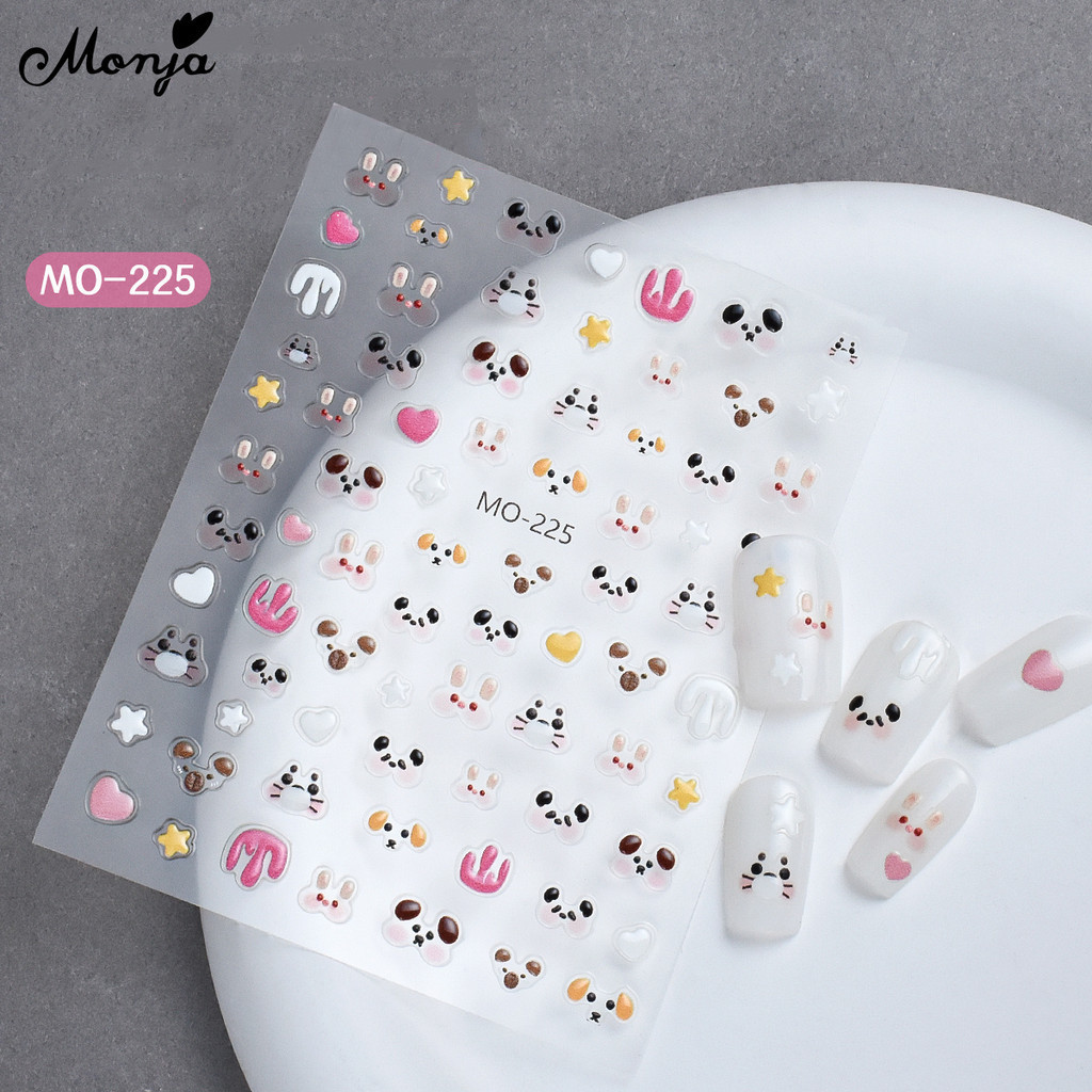 Monja สติกเกอร์ ลายอุ้งเท้าแมว สุนัข แพนด้า 3D มีกาวในตัว สําหรับตกแต่งเล็บ DIY