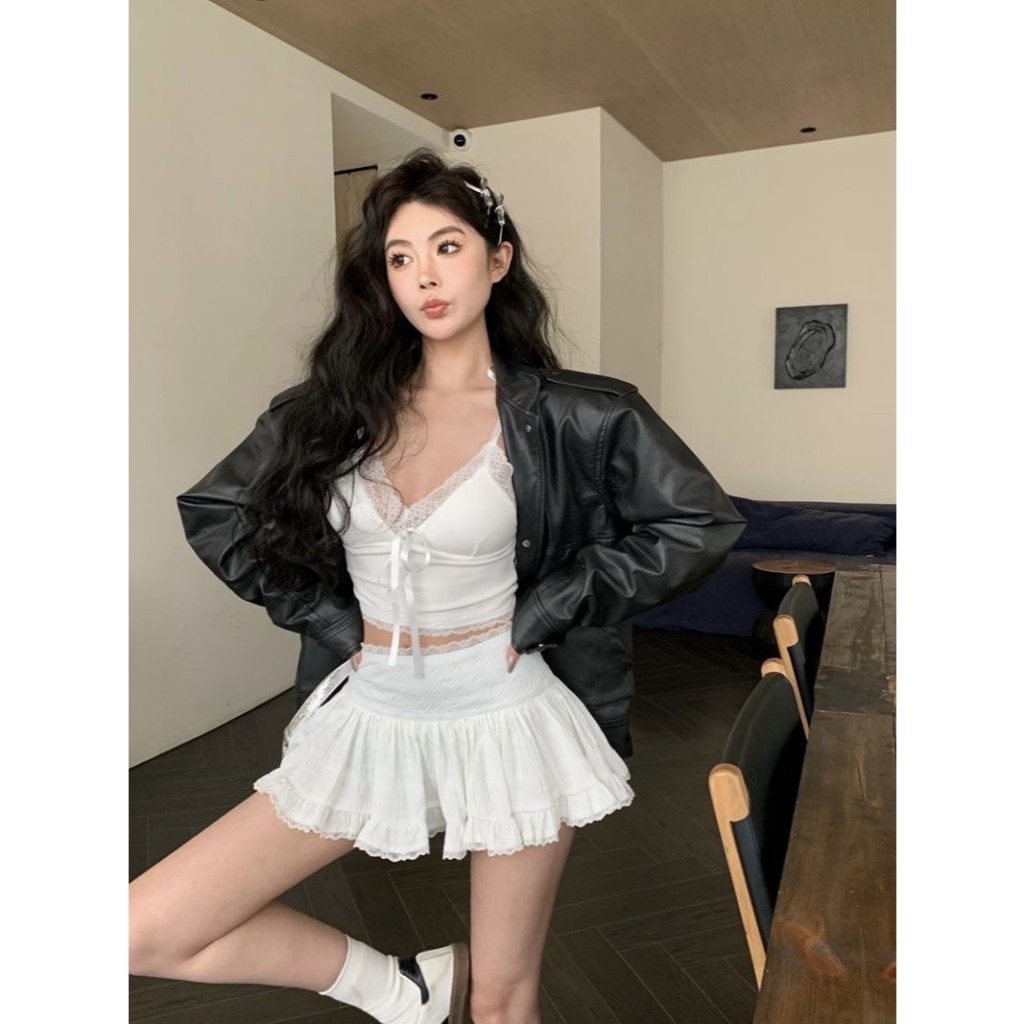 🌟B-264🌟เสื้อสายเดี่ยวขอบลูกไม้ สายผูก ดีเทลโบว์ มีฟองน้ำในตัว 🌟 มีฟองน้ำในตัว ผ้านุ่ม ยืดได้เยอะ ขนาดเสื้อสายเดี่ยว รอบอก 28-36 นิ้ว เสื้อยาว 12 นิ้ว
