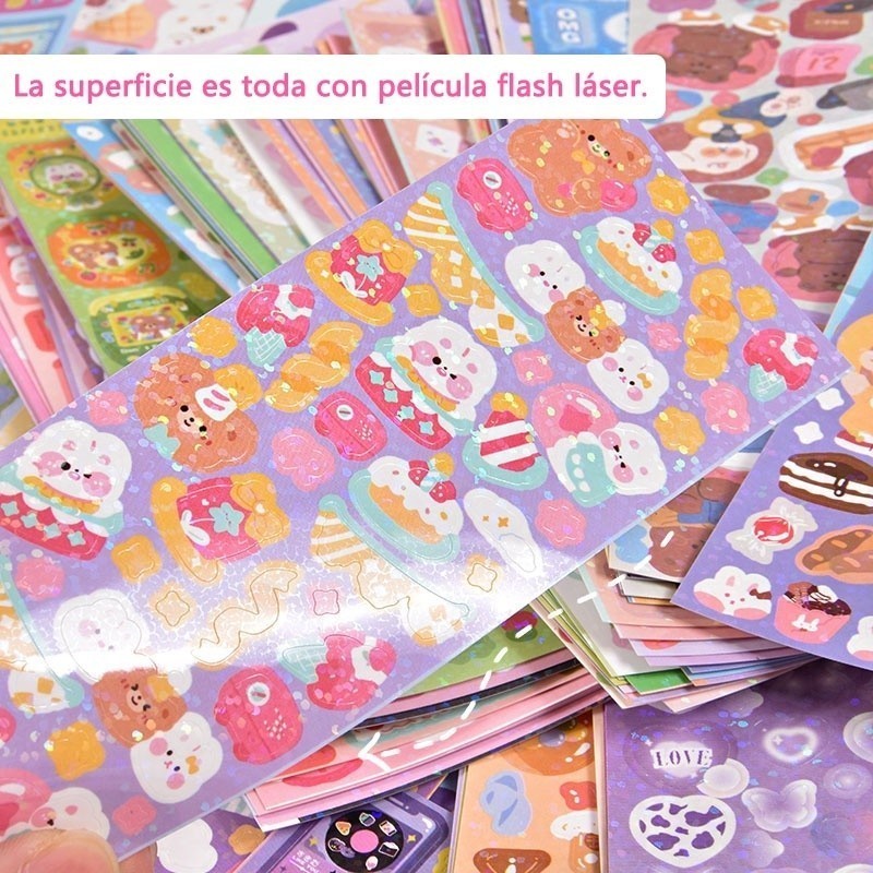 ชุดสติกเกอร์น่ารัก ฟรีแหนบ สติกเกอร์เลเซอร์ ลายการ์ตูนน่ารัก สําหรับเด็ก DIY เครื่องเขียนตกแต่ง