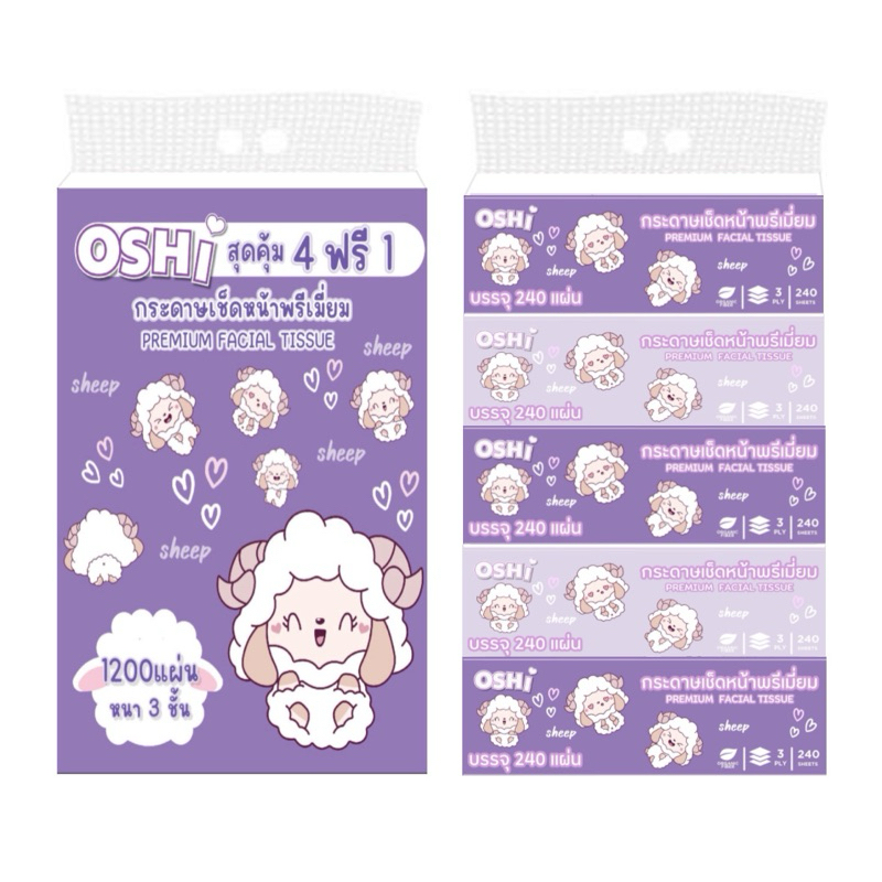 ทิชชู่น้องแกะพาสเทล 1หิ้ว5ห่อ เกรดพรีเมียม 240แผ่น/80ดึง หนา3ชั้น หรัส 808 เกรกเช็ดหน้าเนื้อนุ่ม ไม่เป็นขุย
