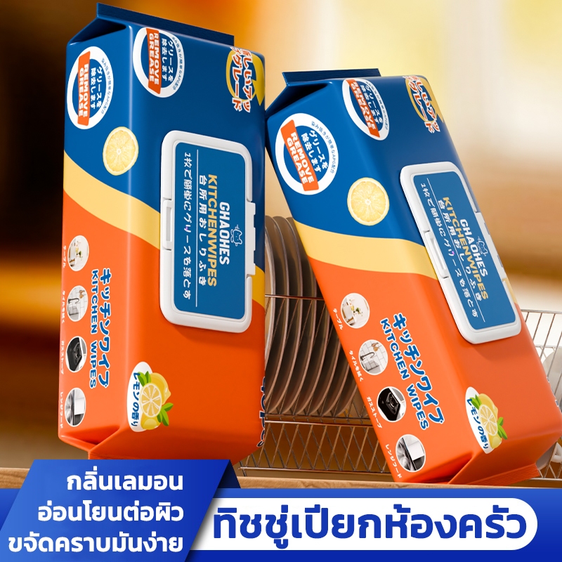 ทิชชู่เปียกห้องครัว แผ่นทำความสะอาดครัว ทิชชู่เปียกทำความสะอาด ขจัดคราบมัน เช็ดเตา เช็ดโตะ ล้างจาน มีฟองในตัว กลิ่นเลมอน