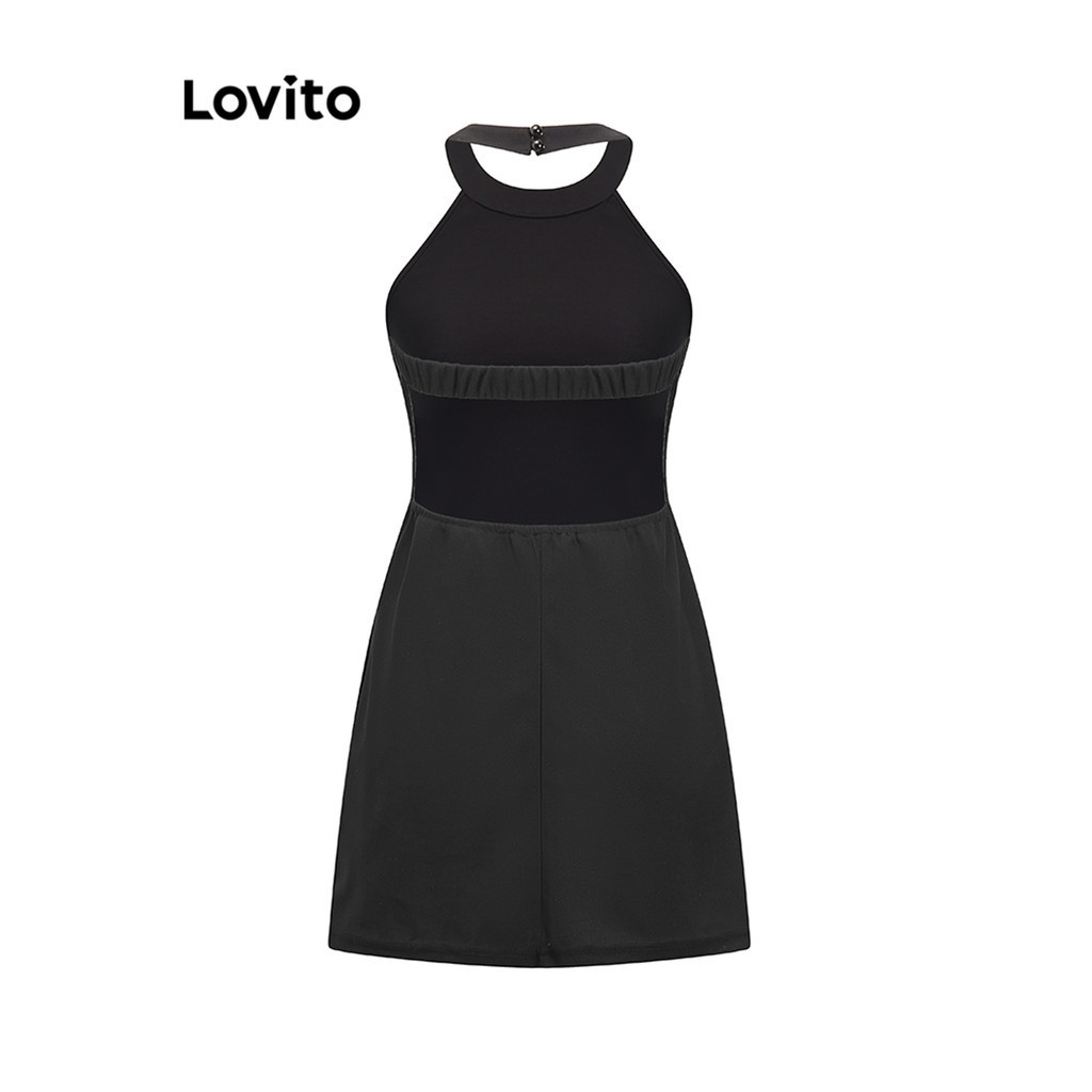 Lovito เดรสผู้หญิง เปิดหลัง สีพื้น สไตล์ลำลอง L83ED173