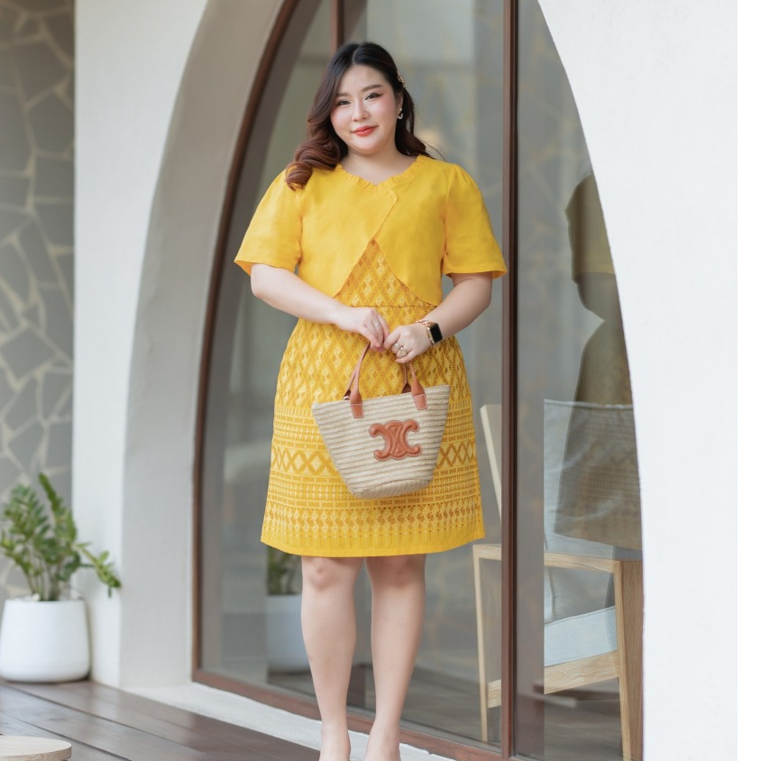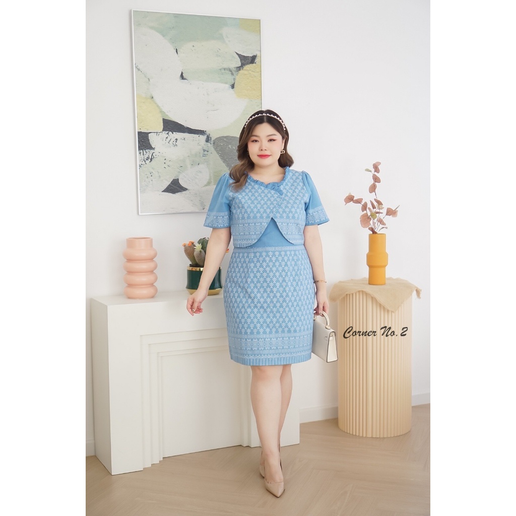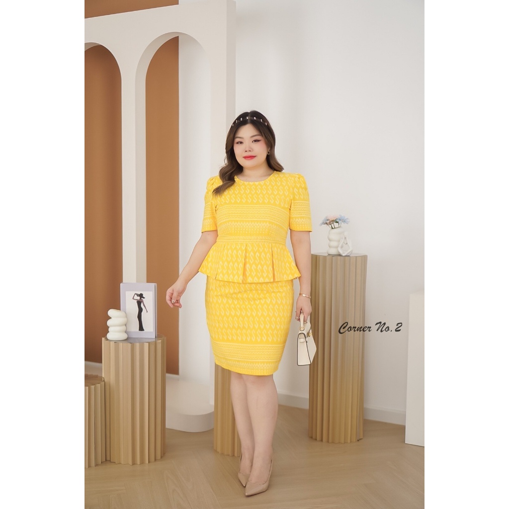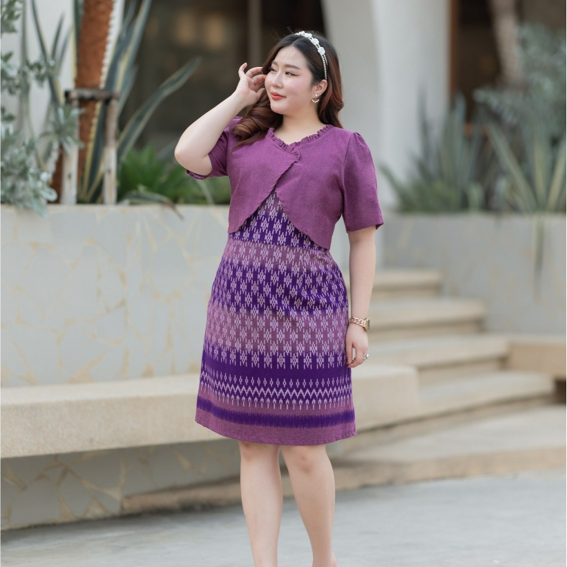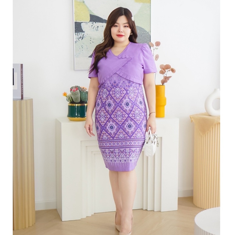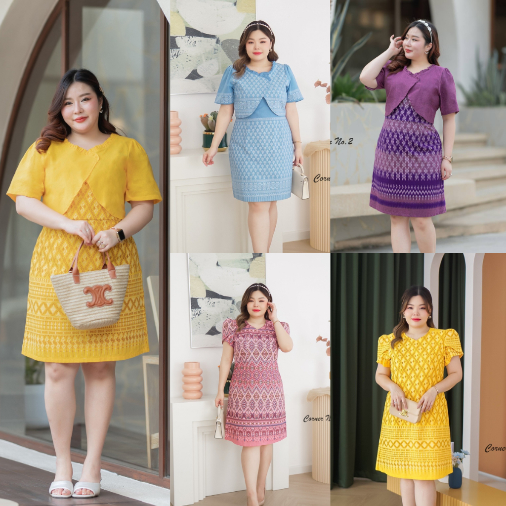 เดรสผ้าไทย ชุดทำงาน คุณครู ข้าราชการ เดรสสาวอวบ มีหลายไซส์ XL/2XL/3XL