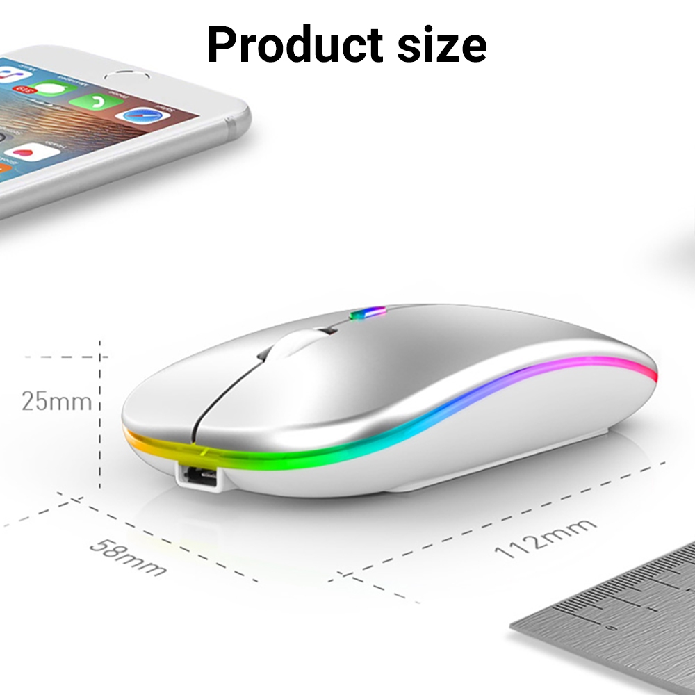 Wireless Mouse 2.4G Mouse เมาส์ไร้สาย เสียงปุ่มเงียบได้ เมาส์เมาส์บลูทูธ แบบชาร์จไฟได้พร้อมไฟRGB Wireless Mouse