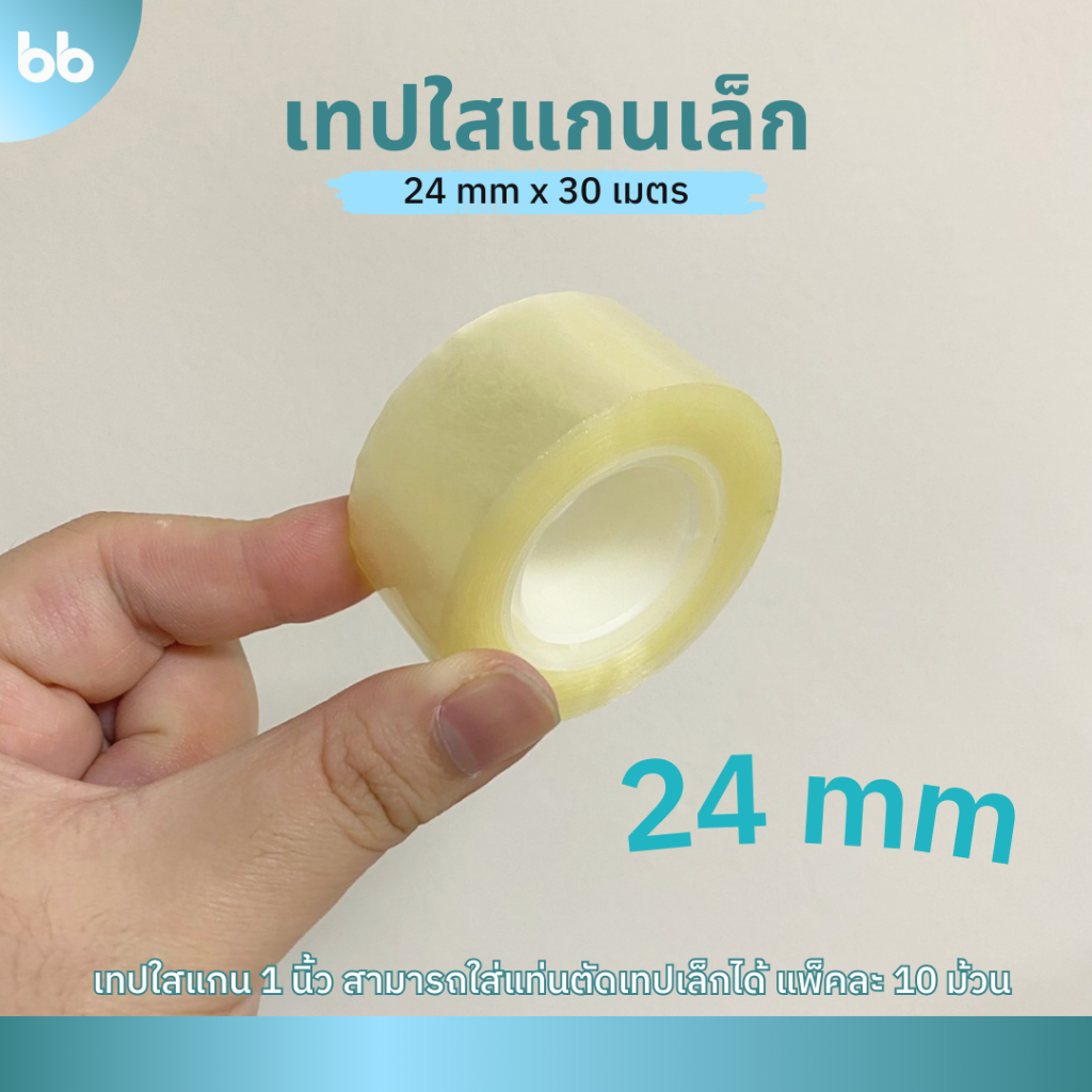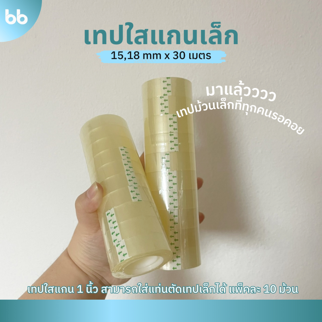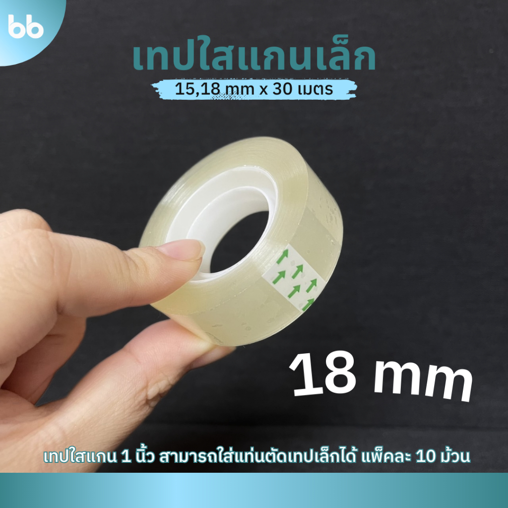 เทปใสม้วนเล็ก (แพ็ค 10 ม้วน) 15,18, 24 mm x 30 เมตร ขนาดแกน 1 นิ้ว เทปสำนักงาน แกนเล็ก